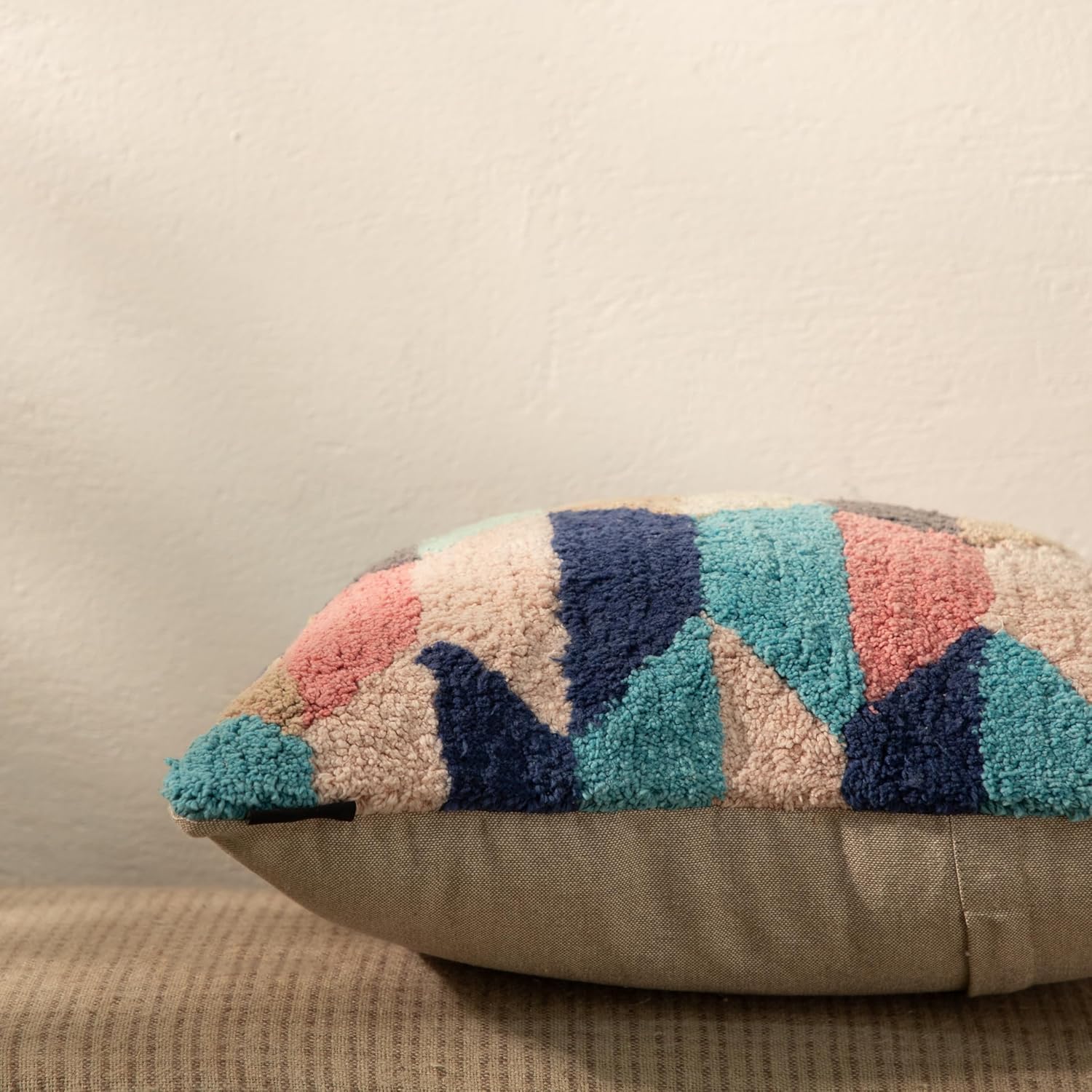 Tuffting Embroidery Decorative Throw Pillow Cover, 18 x 18 inches (Multi Geometrical)