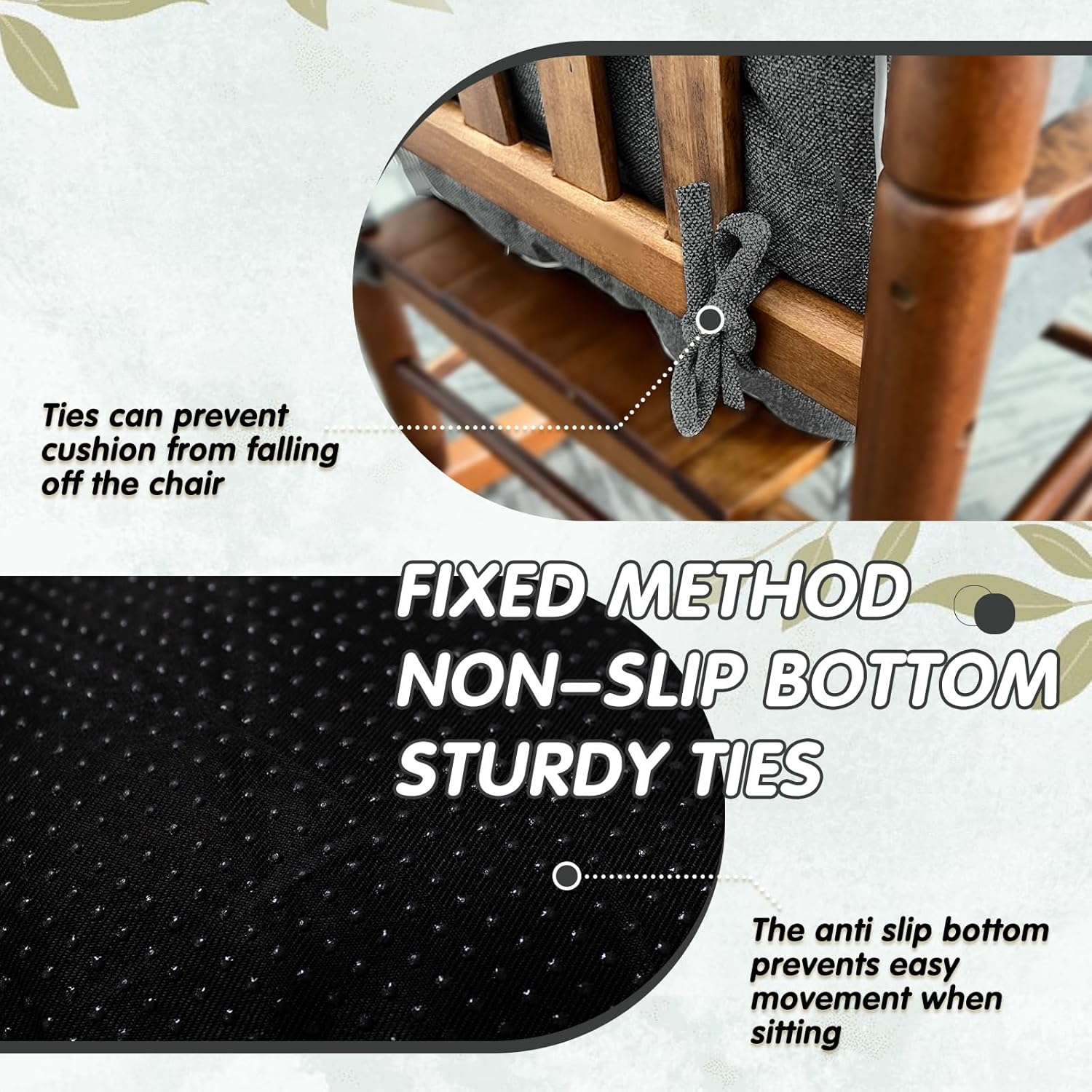 - Durable Ties for Stable Positioning: Equipped with robust ties that fasten firmly to your rocking chair, locking the cushions in place. This prevents the cushions from shifting or sliding during use, ensuring a consistently comfortable seating experience every time you relax in your rocking glider chair