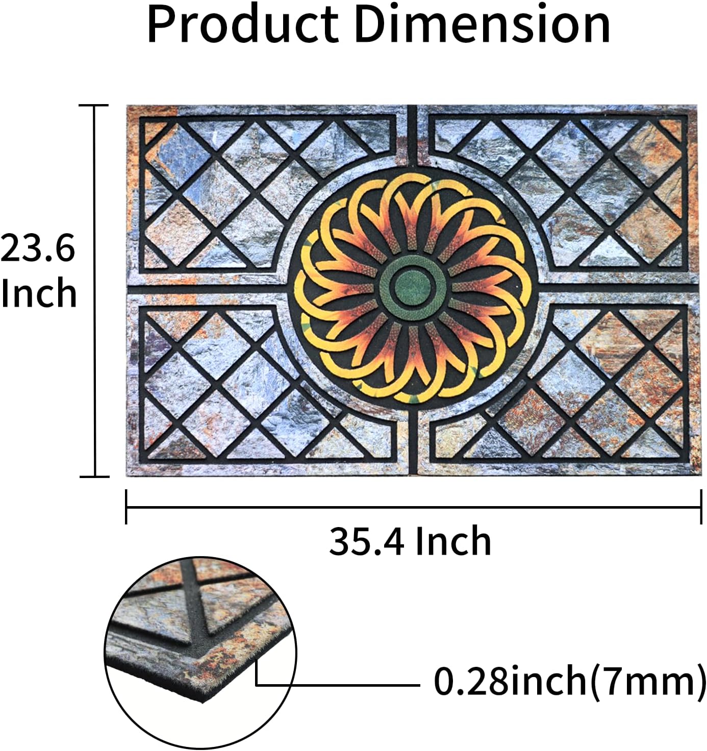 - 【Heavy Duty Door Mat】The door mat for outside measures 23.6 x 35.4 inches with a thickness of 0.28 inches. Made from quality and durable rubber, it ensures long-lasting durability and performs well in all weather conditions, making it suitable for year-round outdoor use.