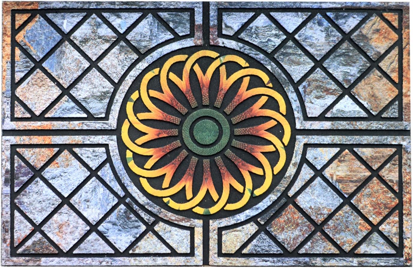 Door Mat Welcome Mat, Heavy Duty Door Mat 23.6 x 35.4 Inch Front Door Mat Rug Doormat for Outdoor Entrance Home Non-Slip Rubber Rug for Front Door, Outside, Entryway, Patio (Flower)