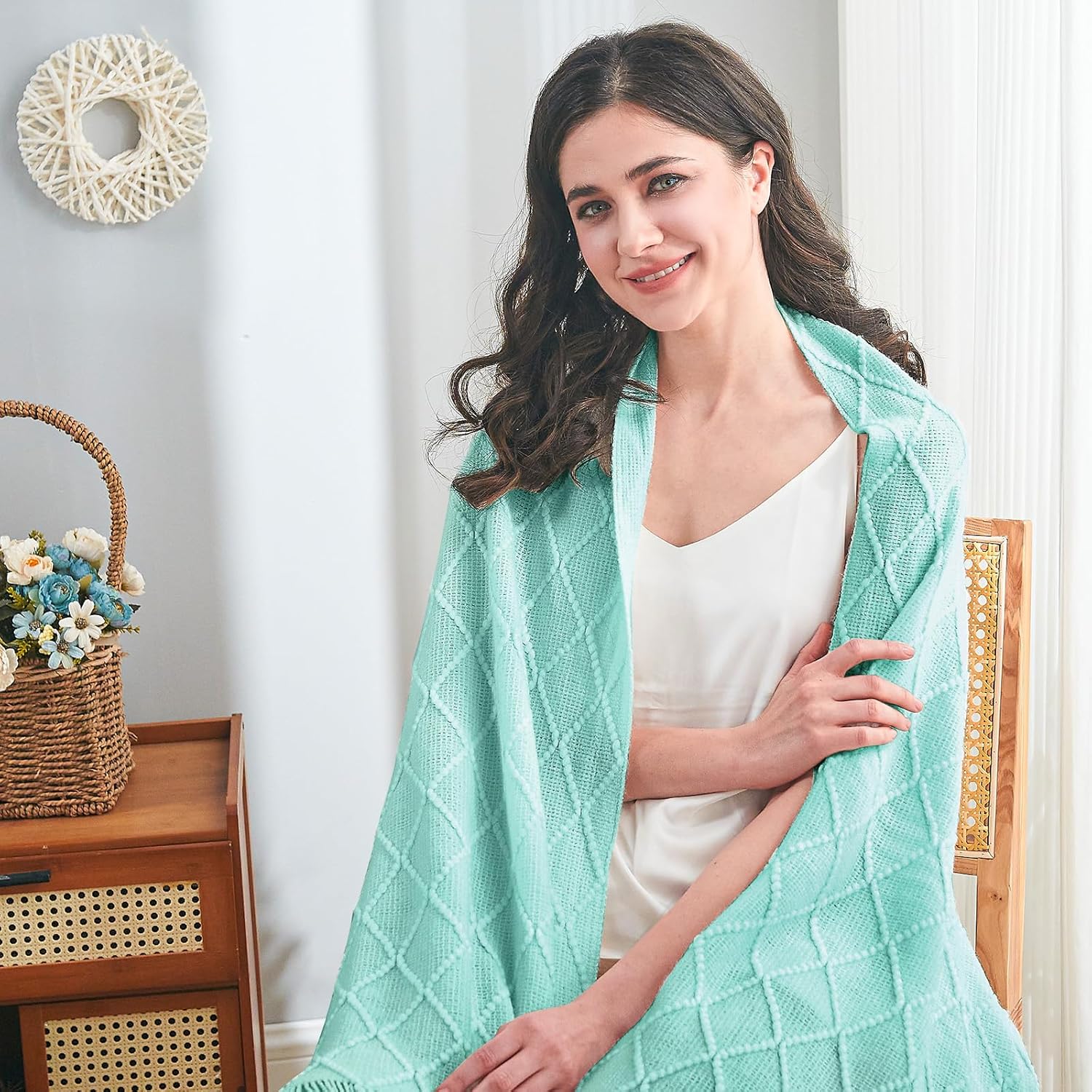 - 【GIFT IDEAS】: Special knitted diamond patterns add a unique accent to your room and people draping it as a shawl. Very suitable for tasteful homeowners. Throw blanket for women, classic but not too tacky as a housewarming gift. Tips: Due to different lighting, display settings, or resolutions, the difference in color happens. We are dying to show the color. To do so, one of the images shows the color difference in different lighting. Hope these instructions would help you to buy a throw.