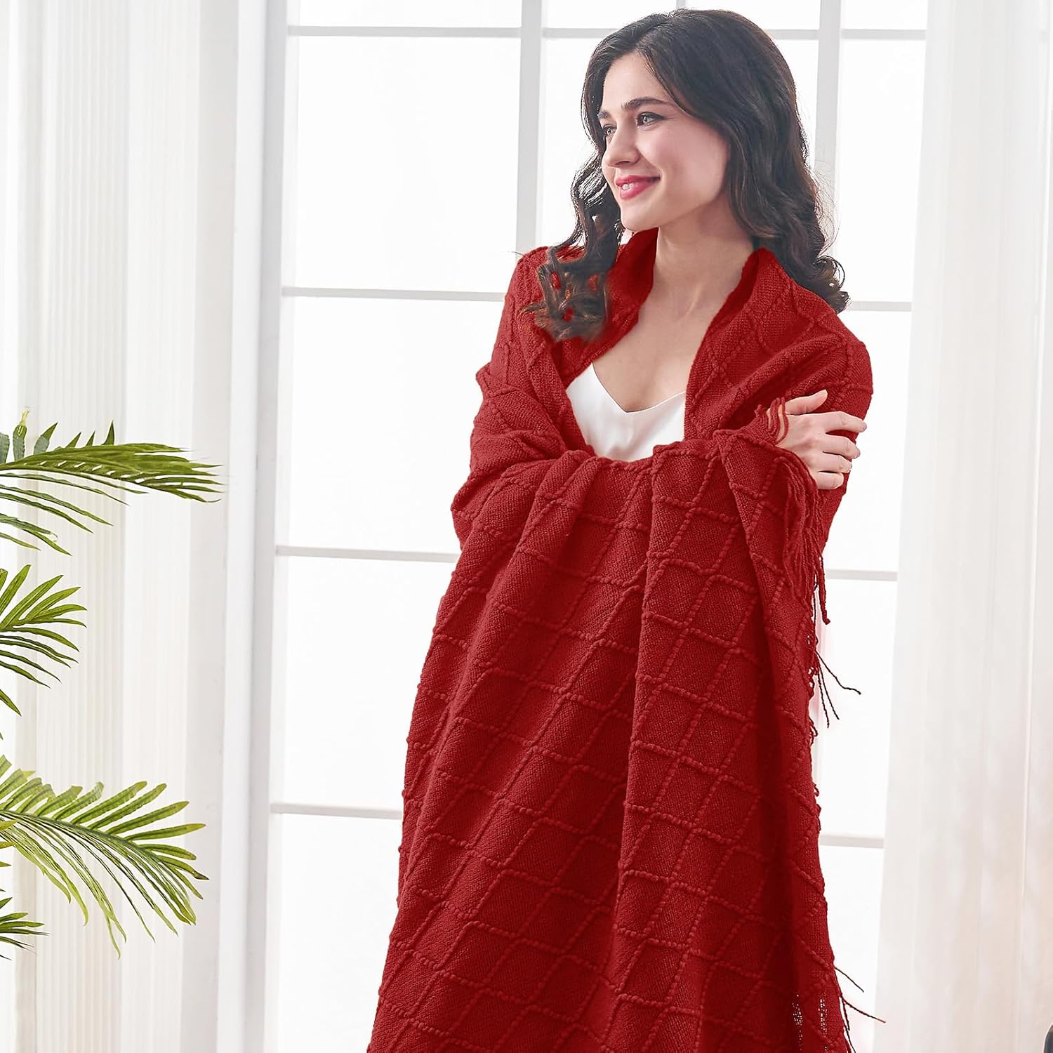 - 【FANTASTICAL COMBINATION】: Decorative blankets and throws ,nice raised diamond shape knit design and well-arranged fringes. It's couldn't be better to decorate your home for Christmas, Thanksgiving, and other holidays. A good cozy blanket is a combination of the right price, satisfactory adaptability, and lovely design.
