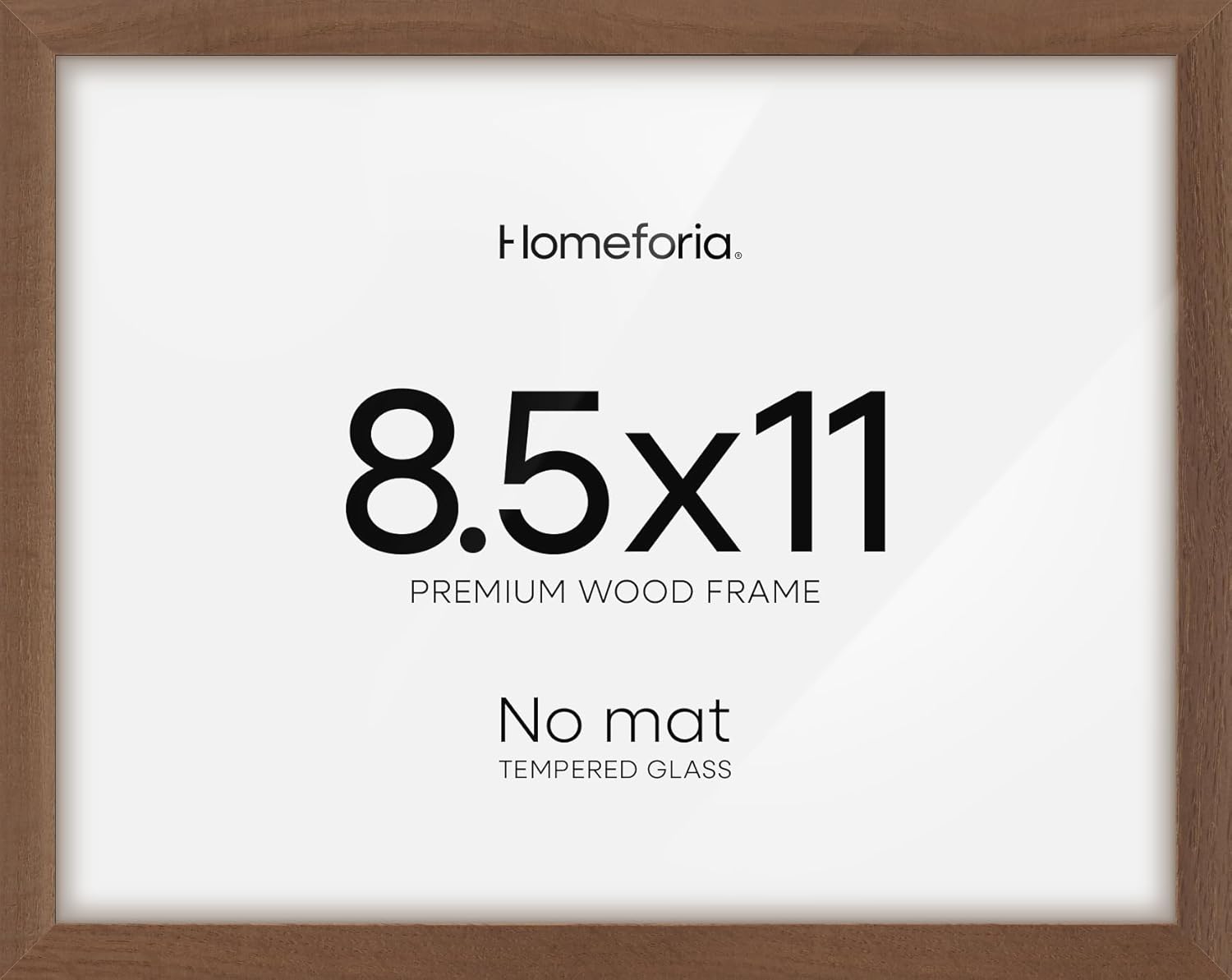 Homeforia Diploma Frame 8.5 x 11 Brown Wood, High End Dark Oak 8.5x11 Certificate Frames, 11x8.5 Document Frames for Wall or Tabletop, 8.5 by 11 Walnut Wooden Frame, Tempered Glass, Wall Kit, Set of 1