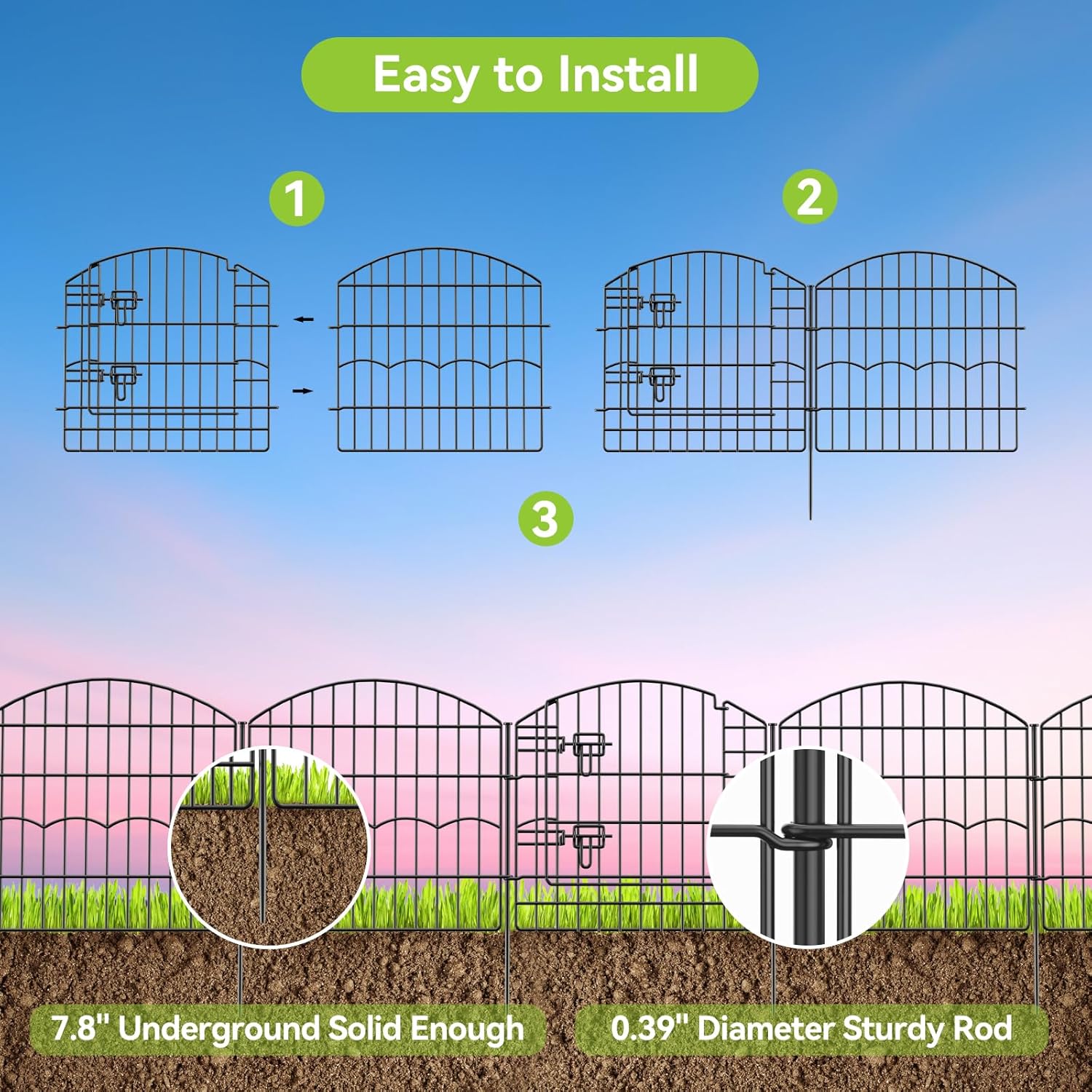 - Multi-Purpose Animal Barrier & Garden Edging Fence – This no-dig fence functions as a temporary fence, metal garden border fence or dog fences for the yard, keeping small animals from damaging plants or escaping to create a pet safe play area. The garden fencing are ideal for providing long-term protection for yard, flower beds, vegetable gardens, landscape and trees, or as a sidewalk, driveway or patio fence decoration, to add decorative and privacy to outdoor spaces.