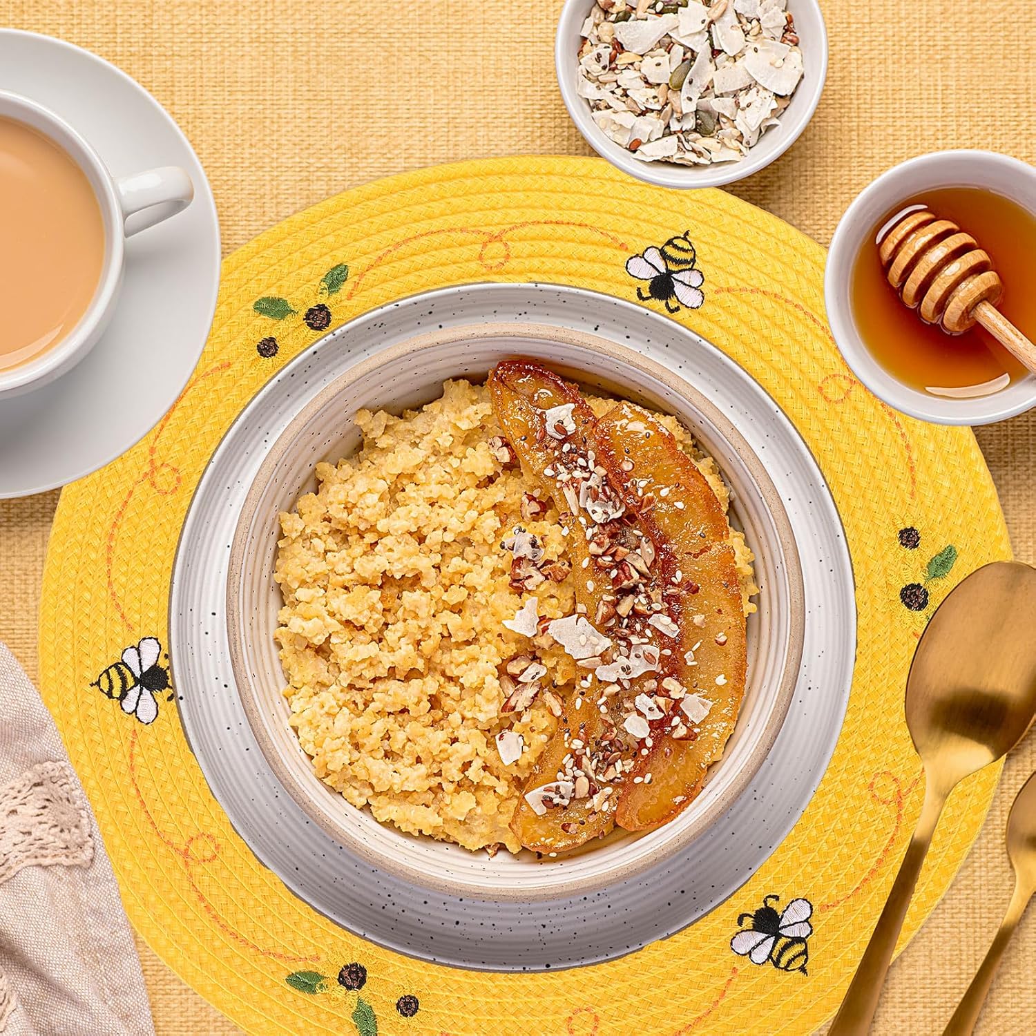 Whaline 4Pcs Round Placemats Bee Sunflower Embroidered Place Mats Bee Floral Dinner Table Mats for Home Spring Summer Holiday Birthday Baby Shower Party Decor