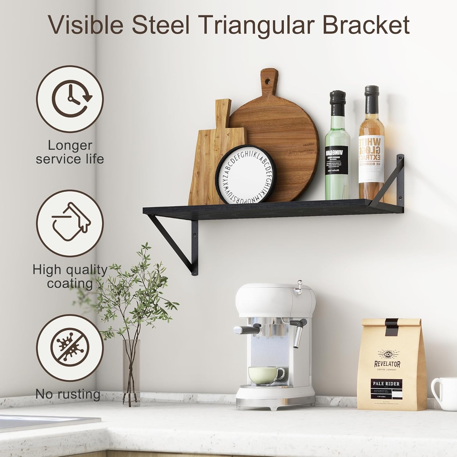 - ăFARMHOUSE RUSTIC WALL SHELFăThese floating shelves are made of premium engineered wood board and visible triangular bracket. The rustic wooden grain surface add character and warmth to any modern or traditional interior with these deep floating shelves, contrast shelves at staggering heights on the wall or mount side-by-side or in the corner for a clean streamlined look.