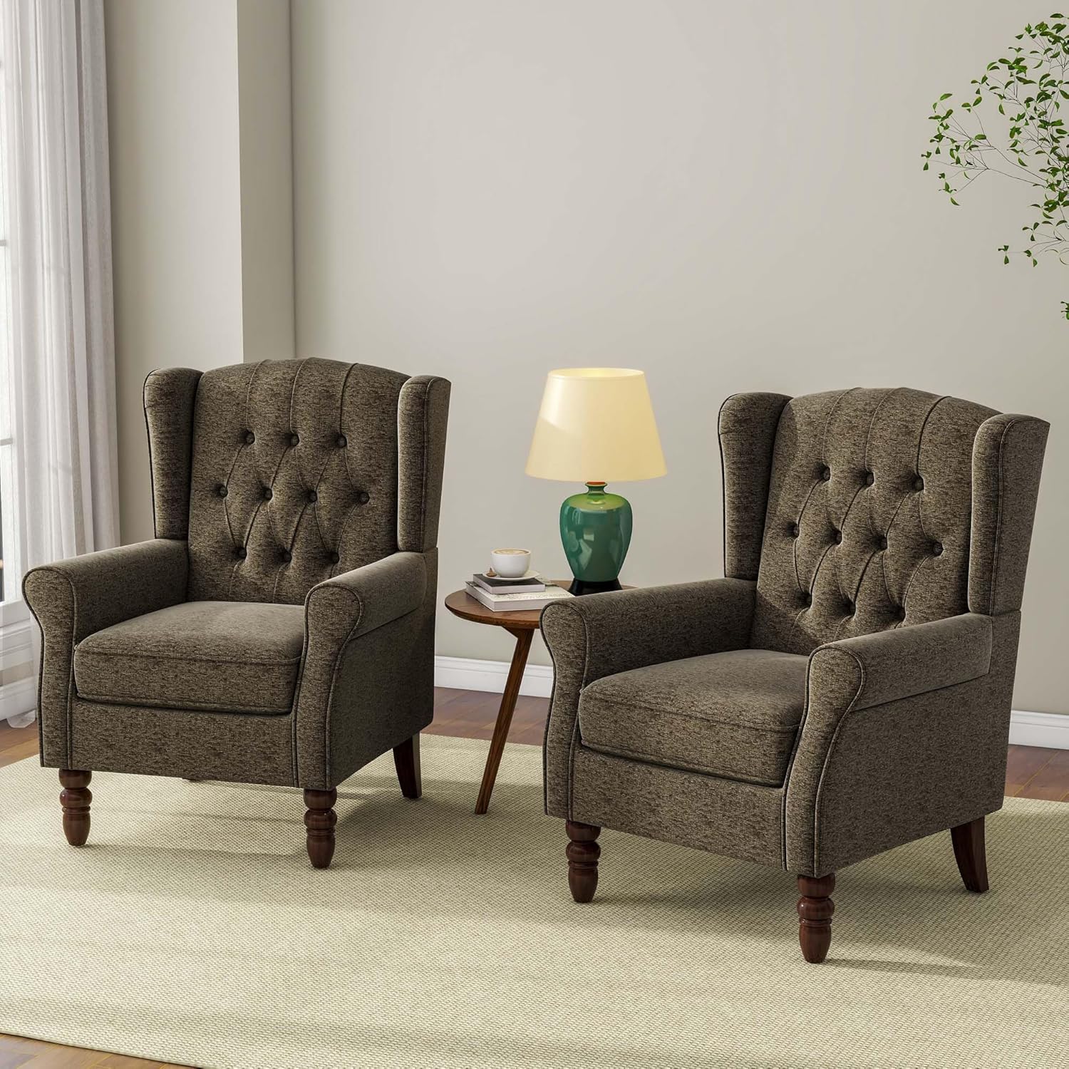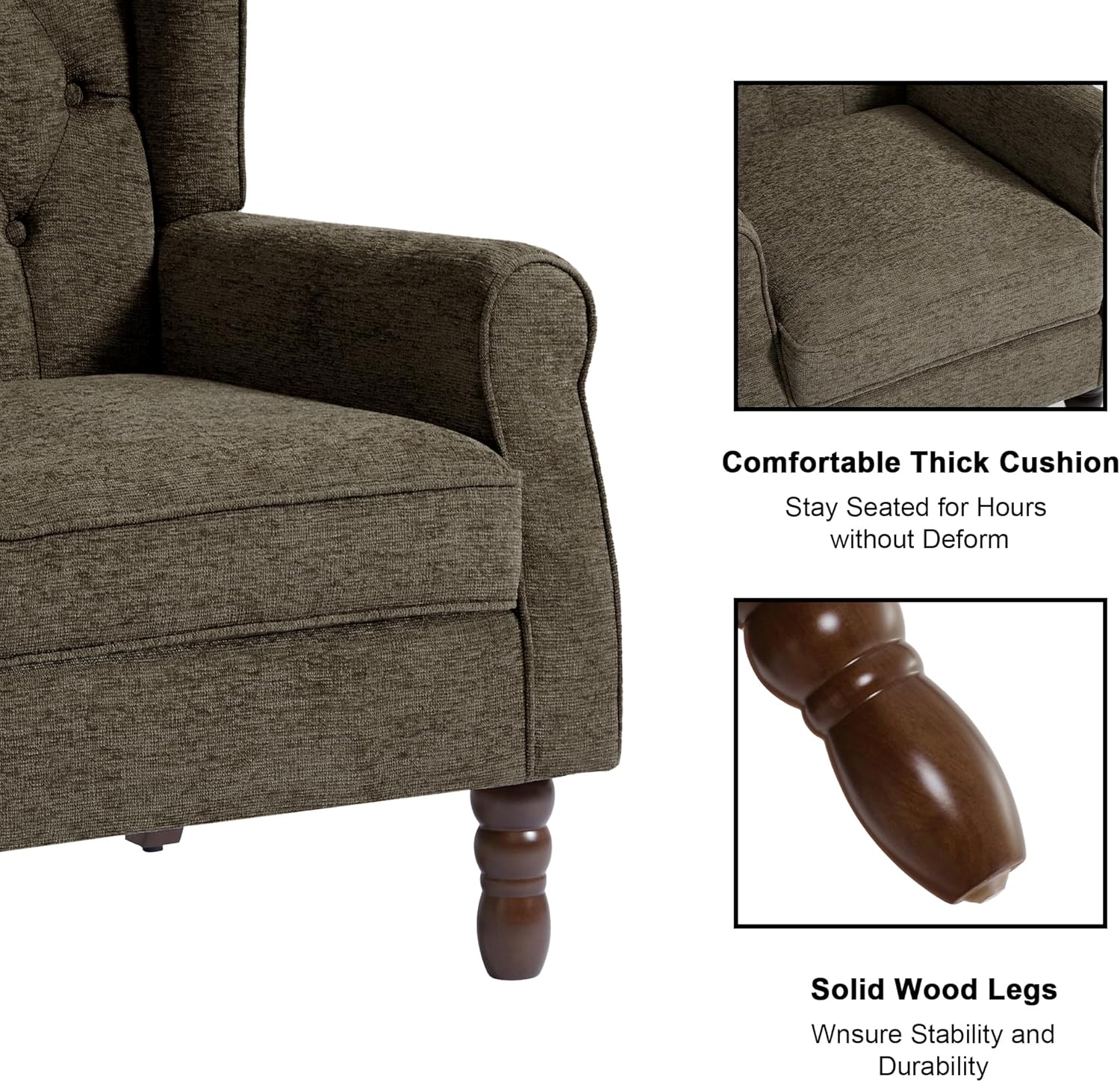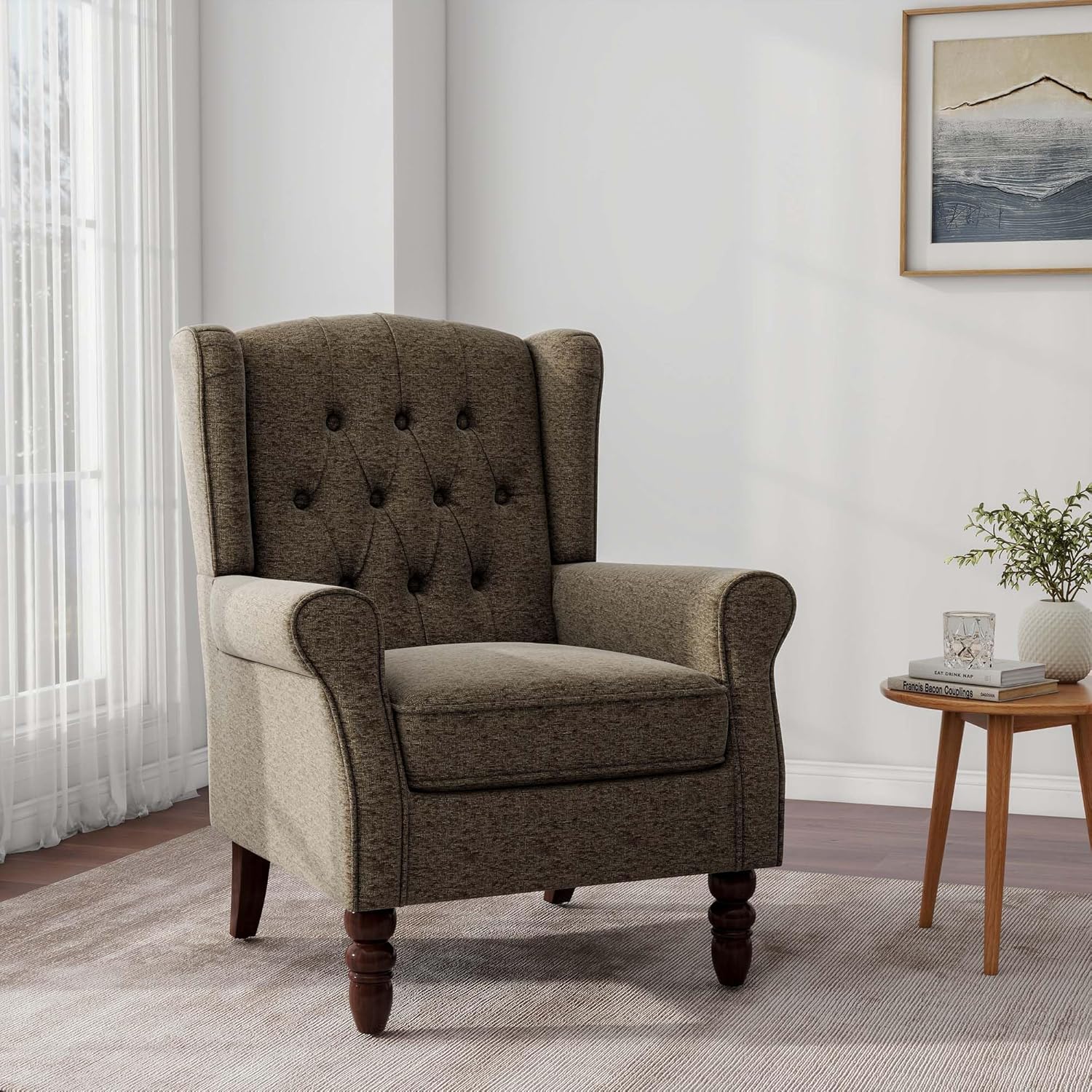 Accent Chair, Upholstered Armchair with Button Tufted High Back & Solid Wood Legs, Comfy Wingback Reading Single Sofa Chair for Small Spaces, Living Room, Bedroom (Taupe, Set of 1)