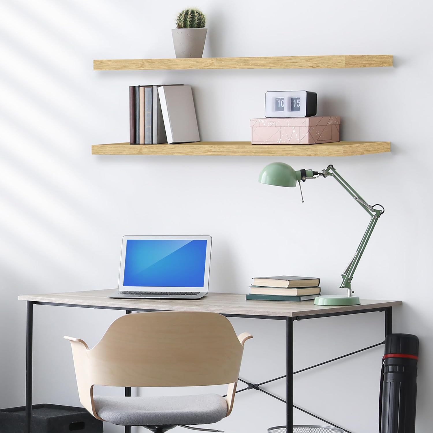 - Floating Shelves for Wall: Display charming showpieces, trophies, photo frames, decorative items, and other prized possessions while offering functional storage with the wooden floating shelves by Sorbus. Enhance home decor, bathroom decor, and living room decor. Use shelves to fill in empty wall space above a desk, fireplace, entryway, vanity, or between windows. Each floating shelf measures approximately 35” x 9” x 1.5”