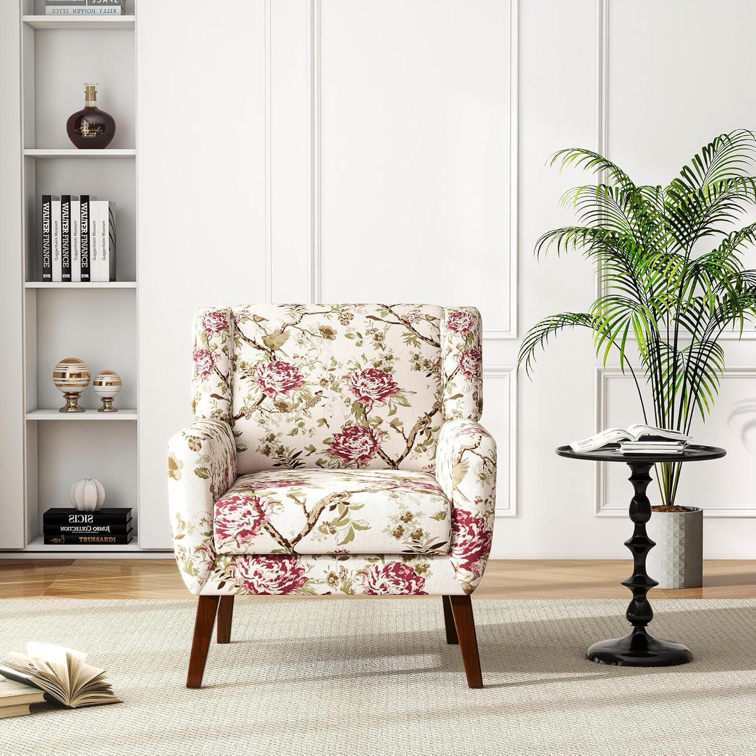 UIXE Floral Accent Chair, Modern Upholstered Armchair in Fabric for Living Room, Comfy Club Arm Chairs Single Sofa Button Tufted Bedroom Reading Seat - Pattern Floral, Set of 2