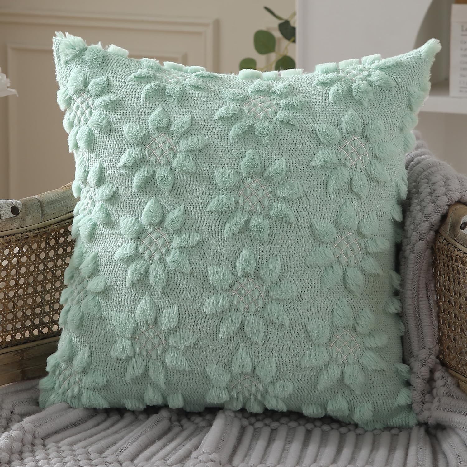 DFXSZ Spring Summer Pillow Covers 20x20 inch Set of 2 Farmhouse Decor White Flower Heart Sunflower Green Soft Plush Faux Fur Jacquard Throw Pillows for Sofa Holiday Spring Home Decor PTK024F20