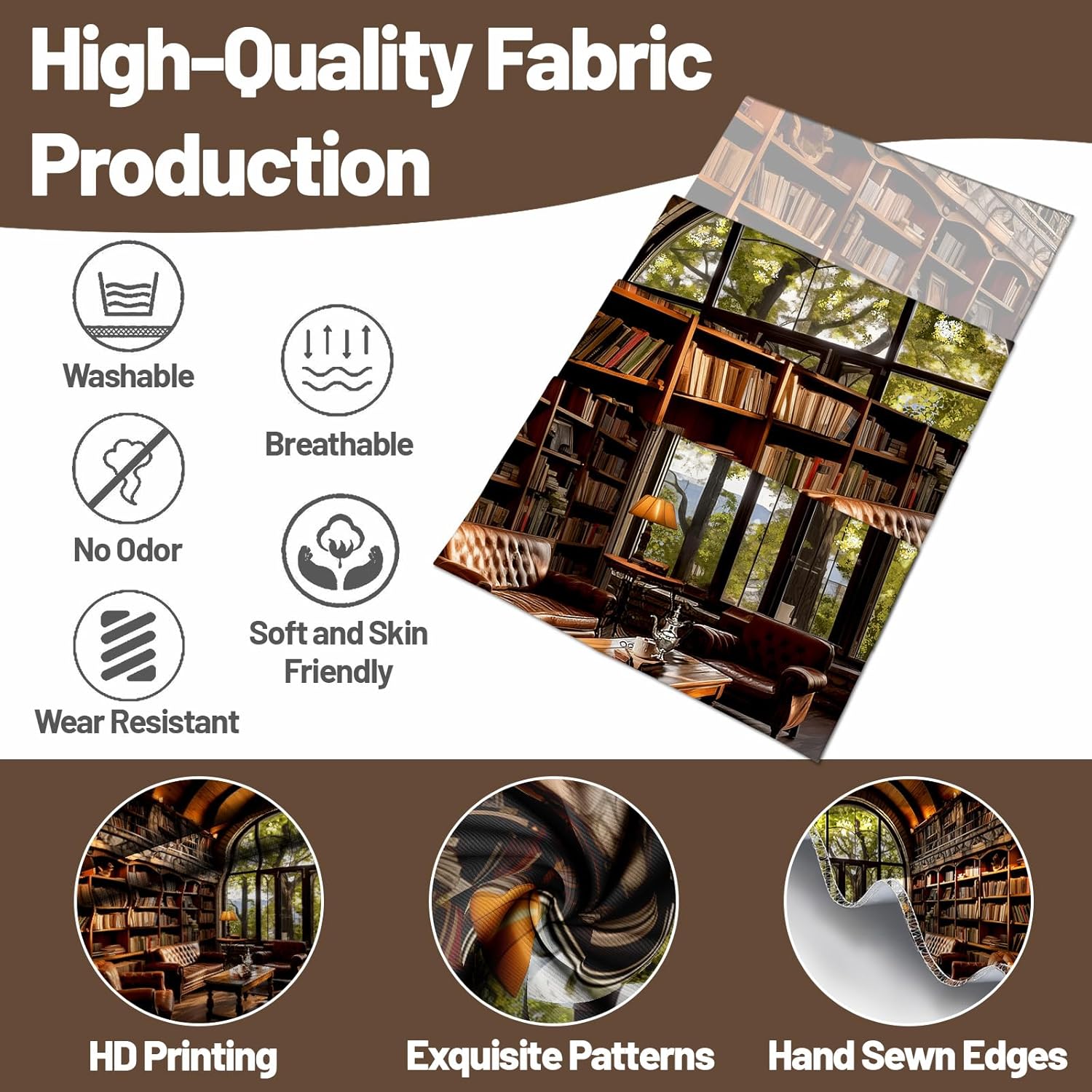 - Fabric: Library tapestry is made of polyester fabric, which is soft, comfortable, durable, breathable and wrinkle-proof. It is not easy to fade and can maintain its original beauty for a long time.