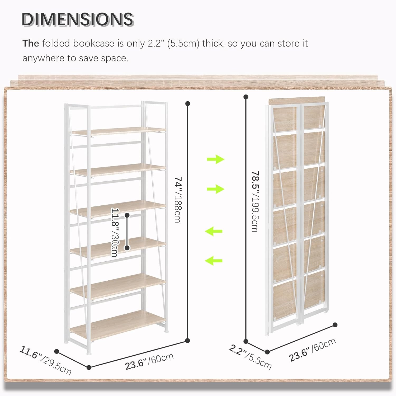 - ăStorage shelf folding sizedă23.62x2.2x78.54 inches (60x5.5x199.5cm).