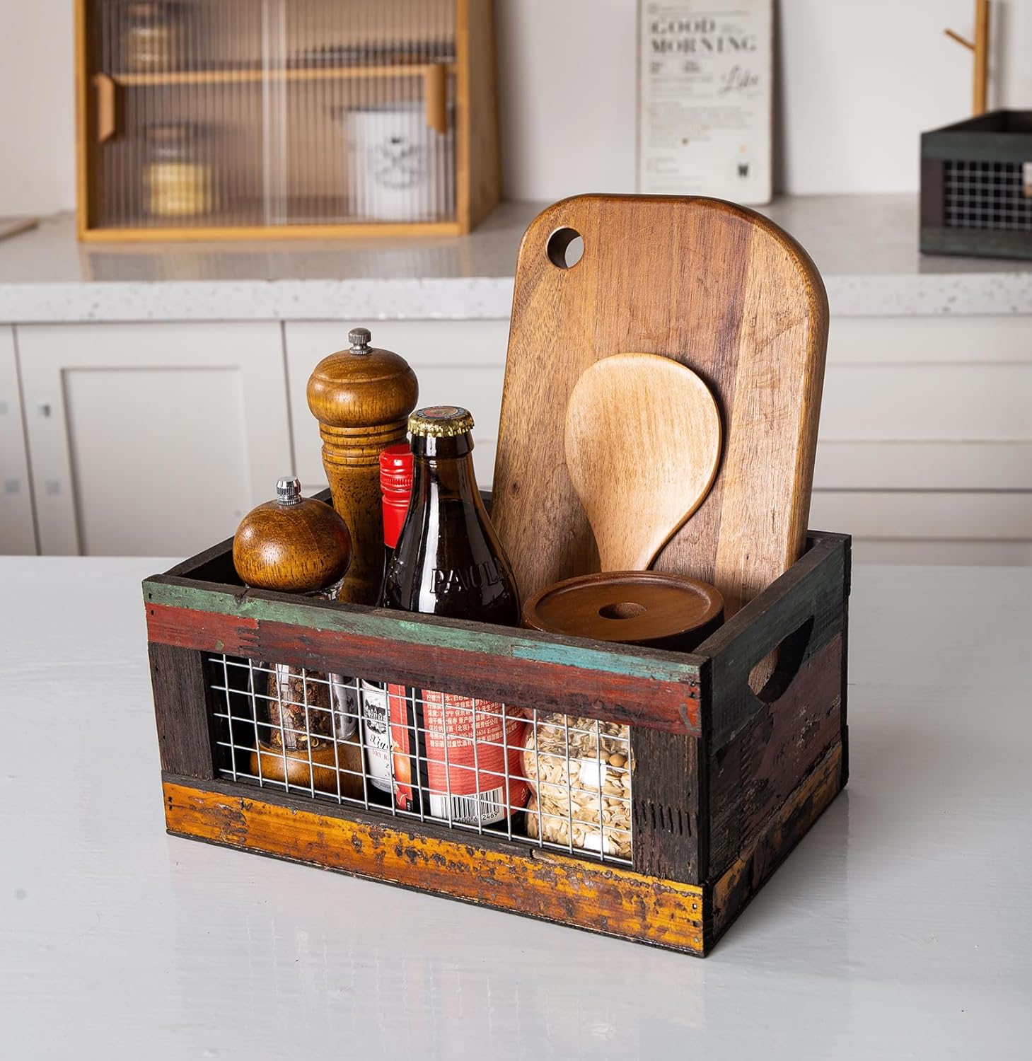 - Special Feature : Rustic Design, Stackable, Vintage Finish, Wire Mesh Panels