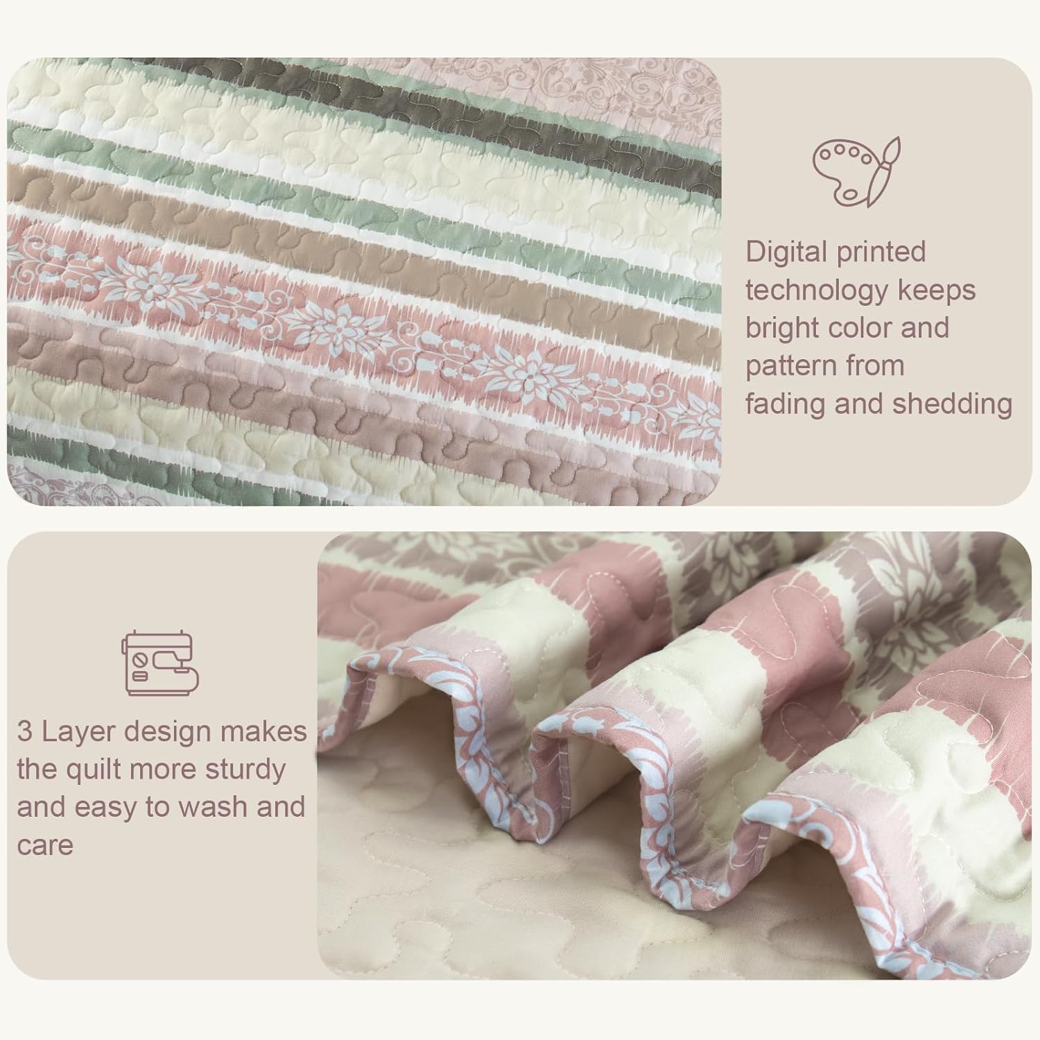 - Premium Material: This ultra comfortable quilt bedding set is soft to the touch and light as a feather. 3-layer design and tight stitching make this coverlet a caring and long-time companion to provide softness and defend against cold