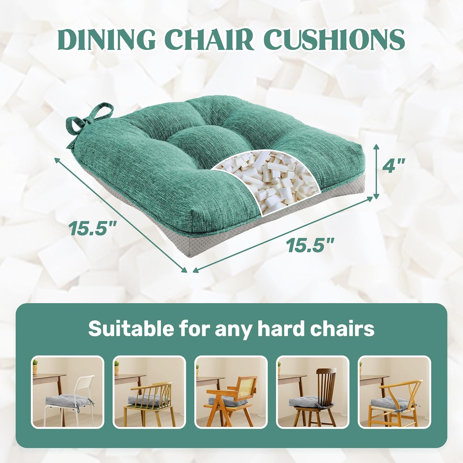 - Versatile & Perfect Fit: With dimensions of 15.5" x 15.5" x 4", this cushion is ideal for a wide range of chairs, from dining chairs to office chairs, and fits seamlessly into various home settings. Its size provides ample coverage and comfort for extended sitting periods.