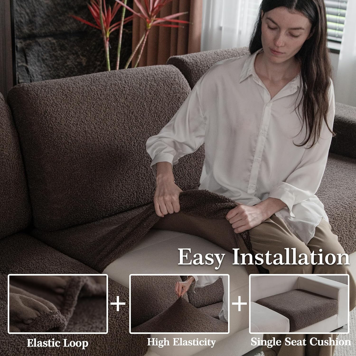 Couch Cushion Covers for Sectional Sofa, Stretch Soft Sofa Slipcovers Washable Wear-Resistant Universal Furniture Protector for Living Room(2 Seaters Covers+1 Chaise Cover, Brown)