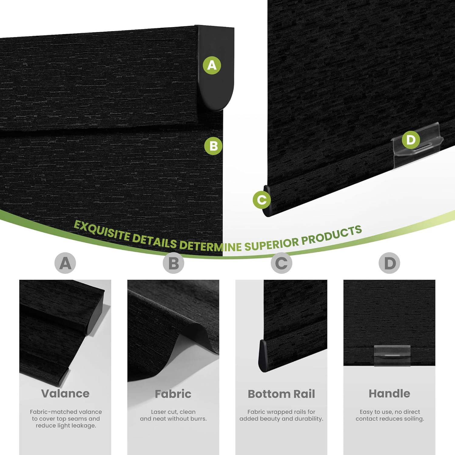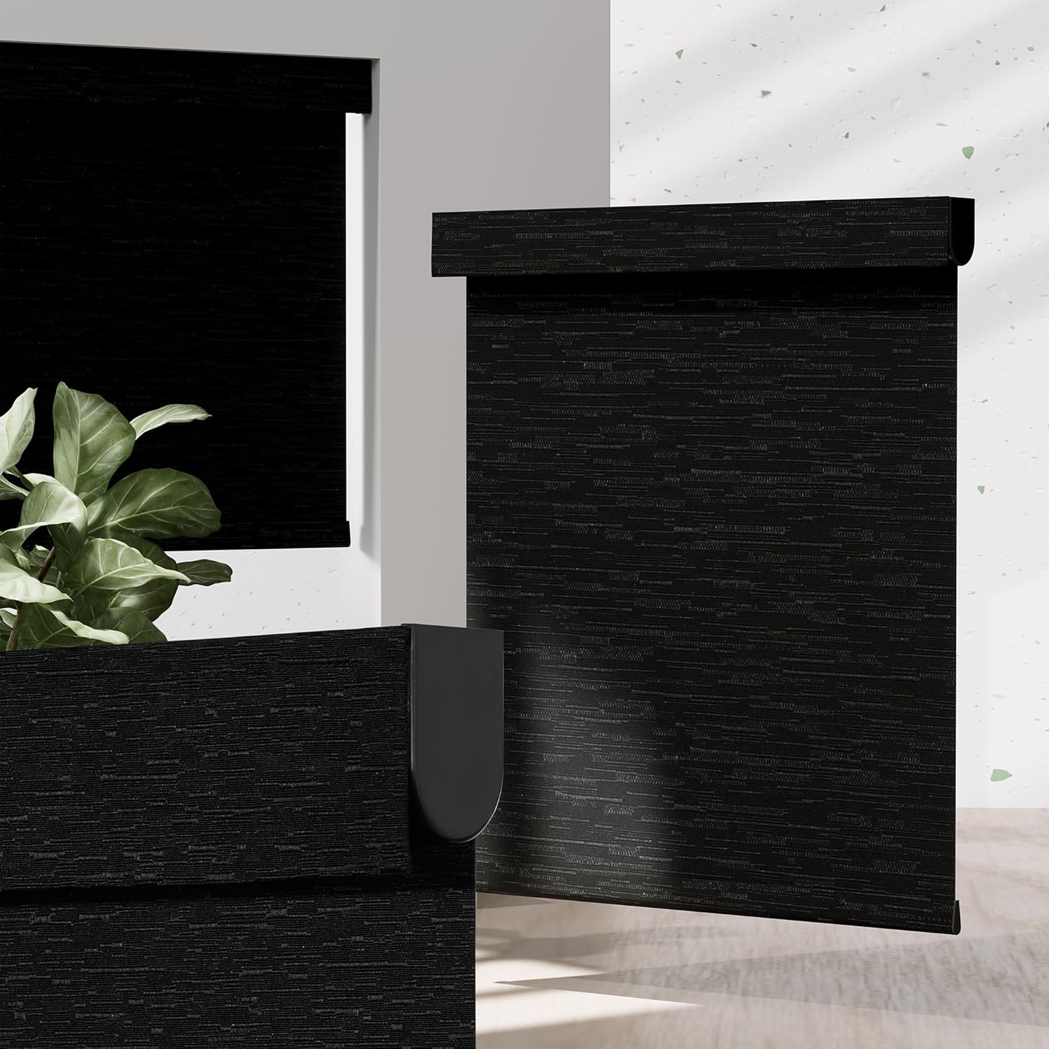 Blackout Roller Shades for Indoor Windows, Cordless Jacquard Fabric-Matched Roller Blinds, Easy to Install Privacy UV Protection Roll Up Blinds for Home Office, Black, Custom Size