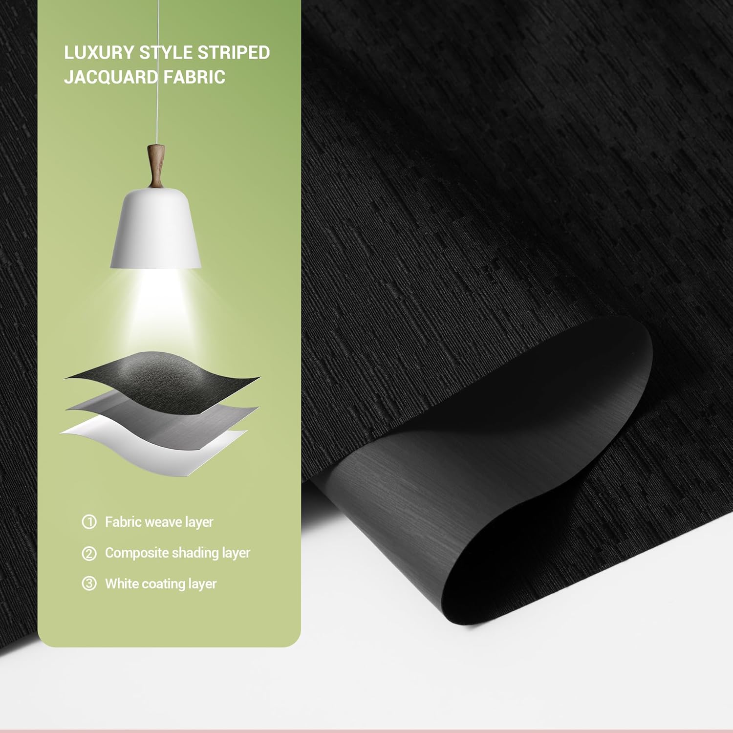 - [Luxurious Jacquard Crafted Fabrics] New blackout roller blind fabrics made of Jacquard, with interlaced weave, richer texture, more skin-friendly and delicate hand feel, make your home more artistic. It can block the sunlight and protect your privacy. The fabric is laser cut so that the fabric has no burrs.