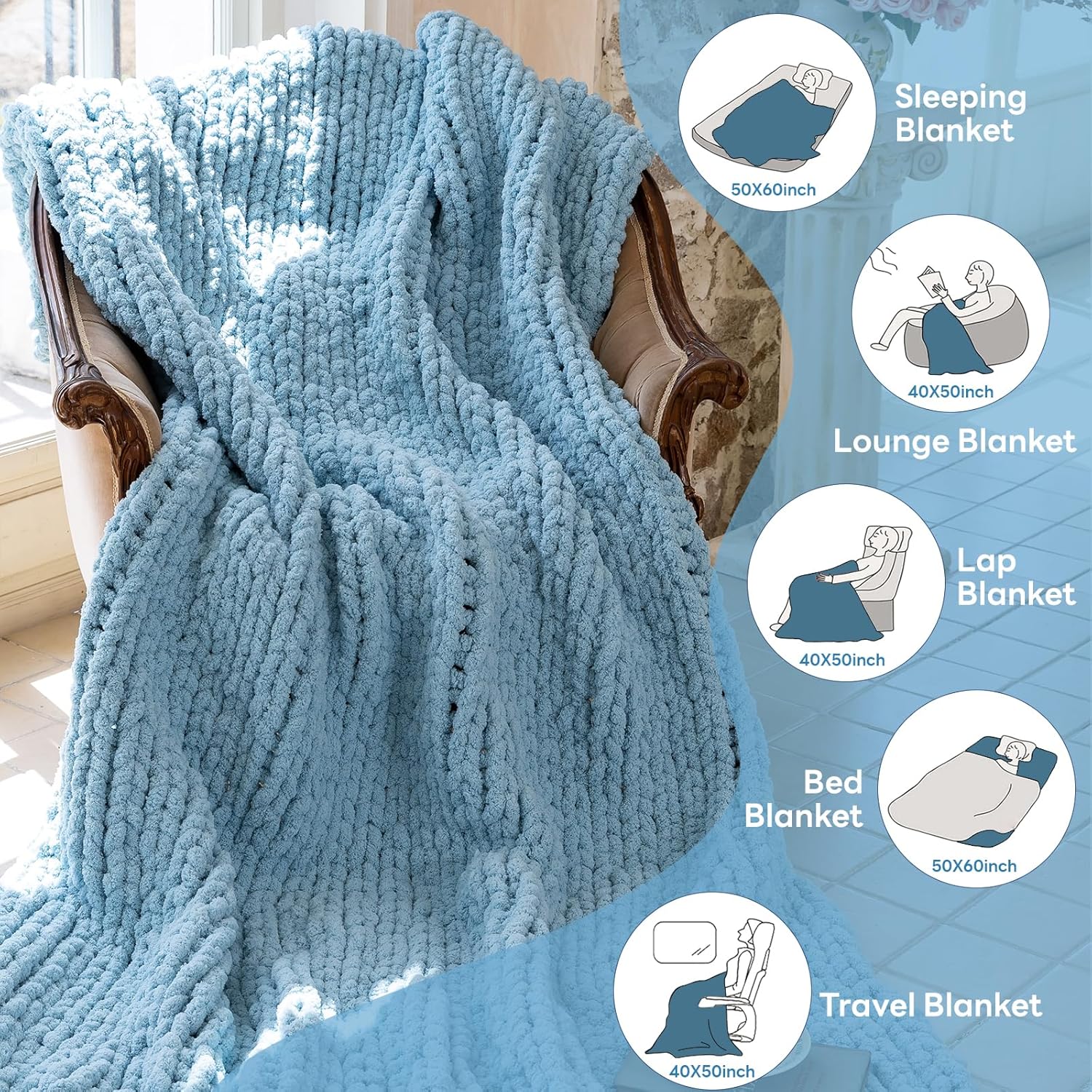 - Soft and Cozy: Made from high-quality, chenille yarn chunky knit blanket provides a soft and warm feel, perfect for cuddling up on cold nights.It will be your comfort companion,Great as chunky crochet blanket for any season