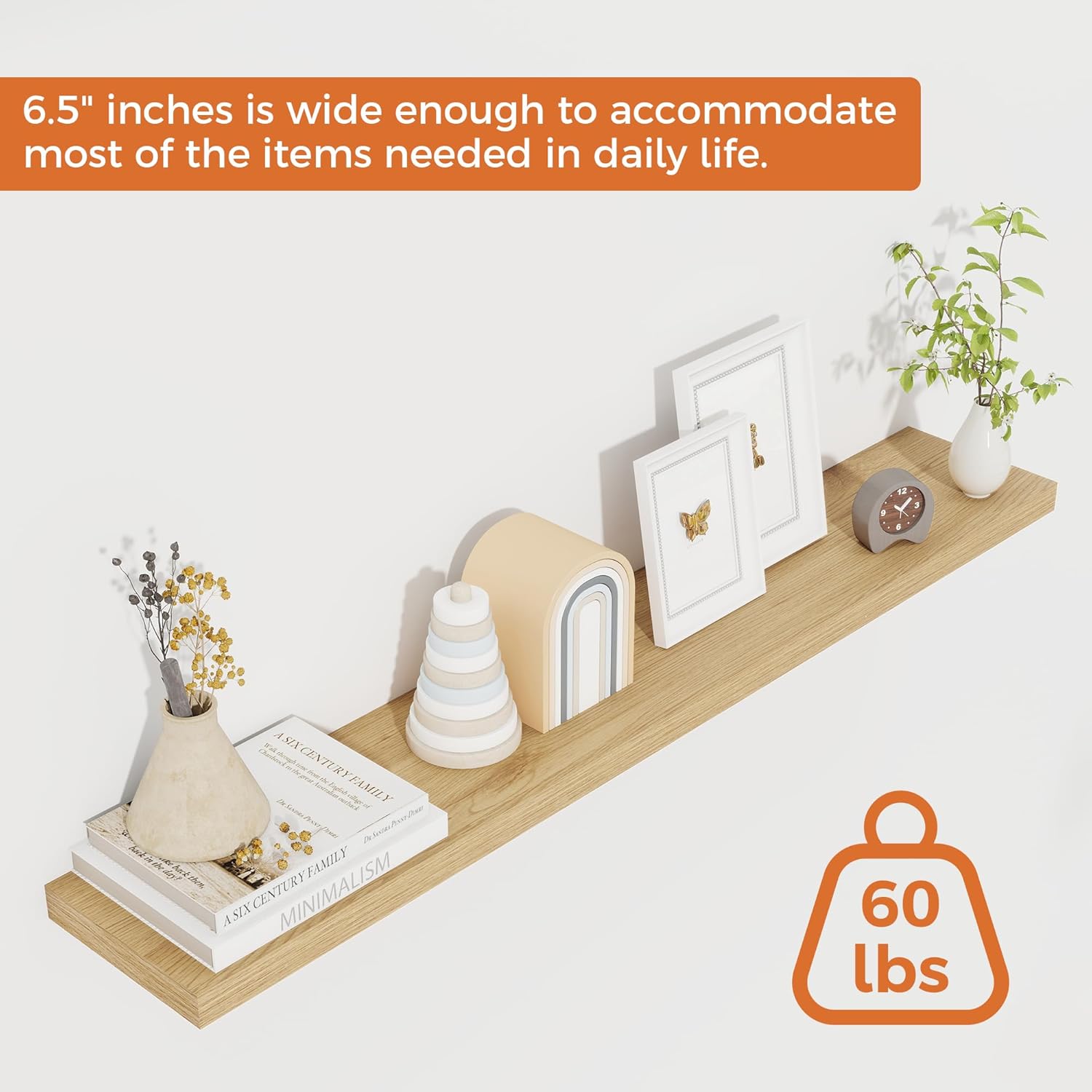 Fun Memories Floating Shelves for Wall, 40" Rustic Wood Deep Wall Mounted Shelves with Invisible Brackets for Decor & Storage, Floating Shelf for Living Room, Bathroom (Oak, Set of 2)