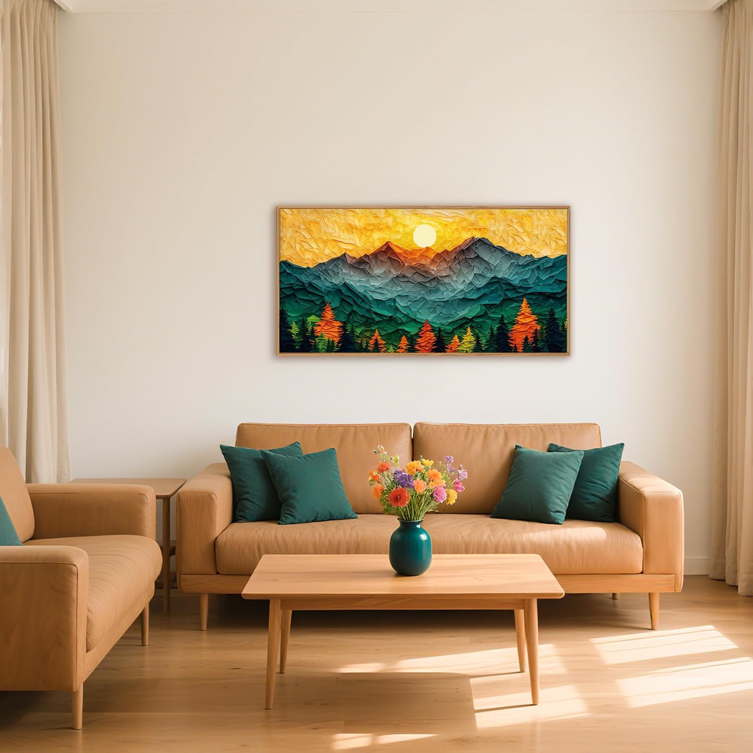 - 【Easy To Hang】This golden sunset wall decor measures 20x40 inches (50x100cm). The provided hanging kit makes it easy to exhibit this artwork. Considering the measurements of your wall, you can effortlessly install the piece, transforming your area into a welcoming haven graced with elegant artwork.