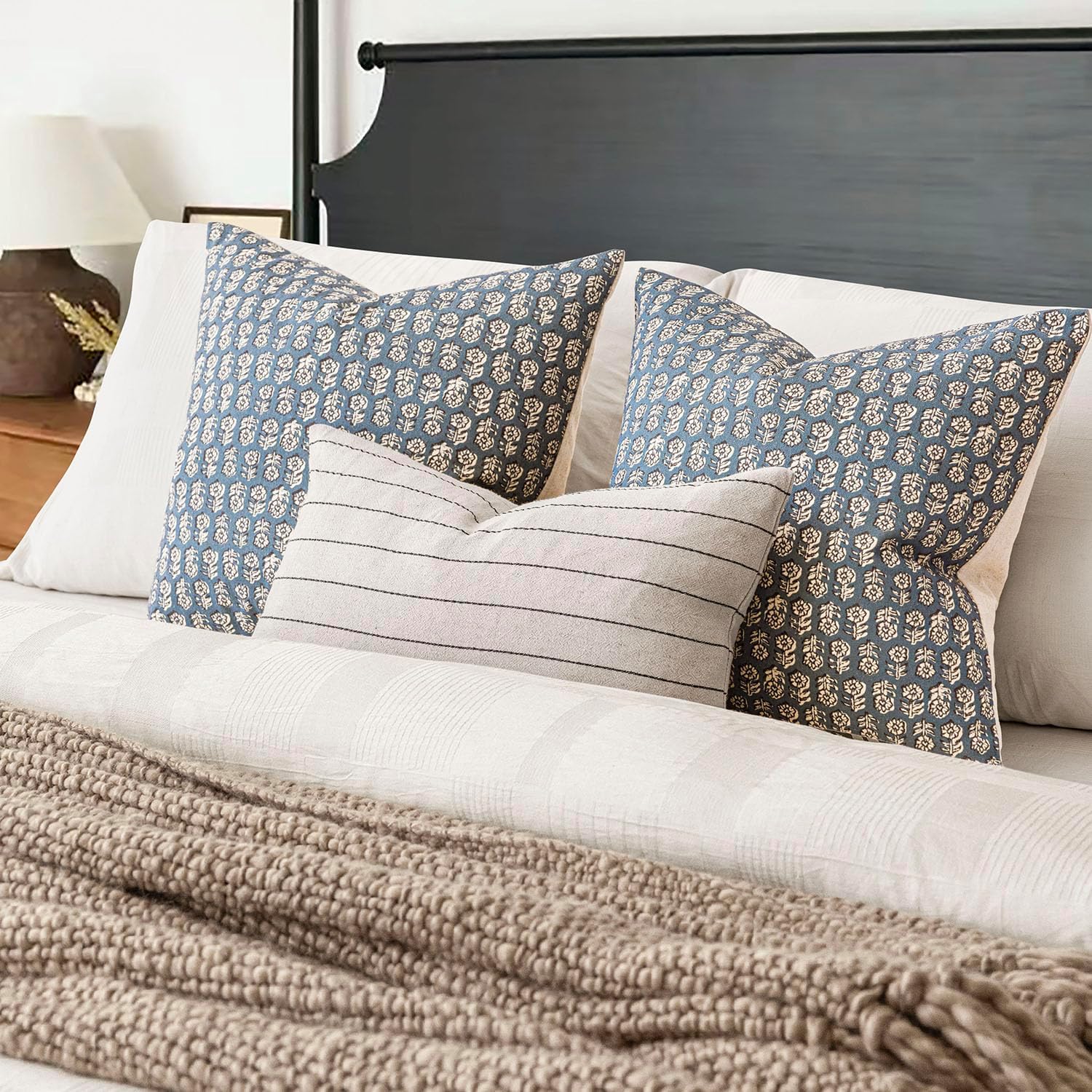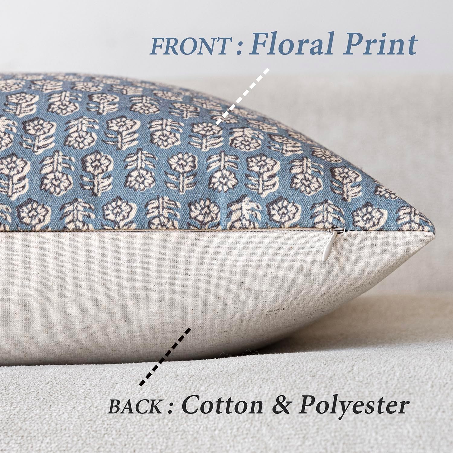 Foindtower Set of 2 Decorative Neutral Floral Print Throw Pillow Covers Vintage Accent Farmhouse Cushion Covers Boho Home Decor for Sofa Couch Chair Bedroom Living Room Outdoor,24×24 Inch,Dusty Blue