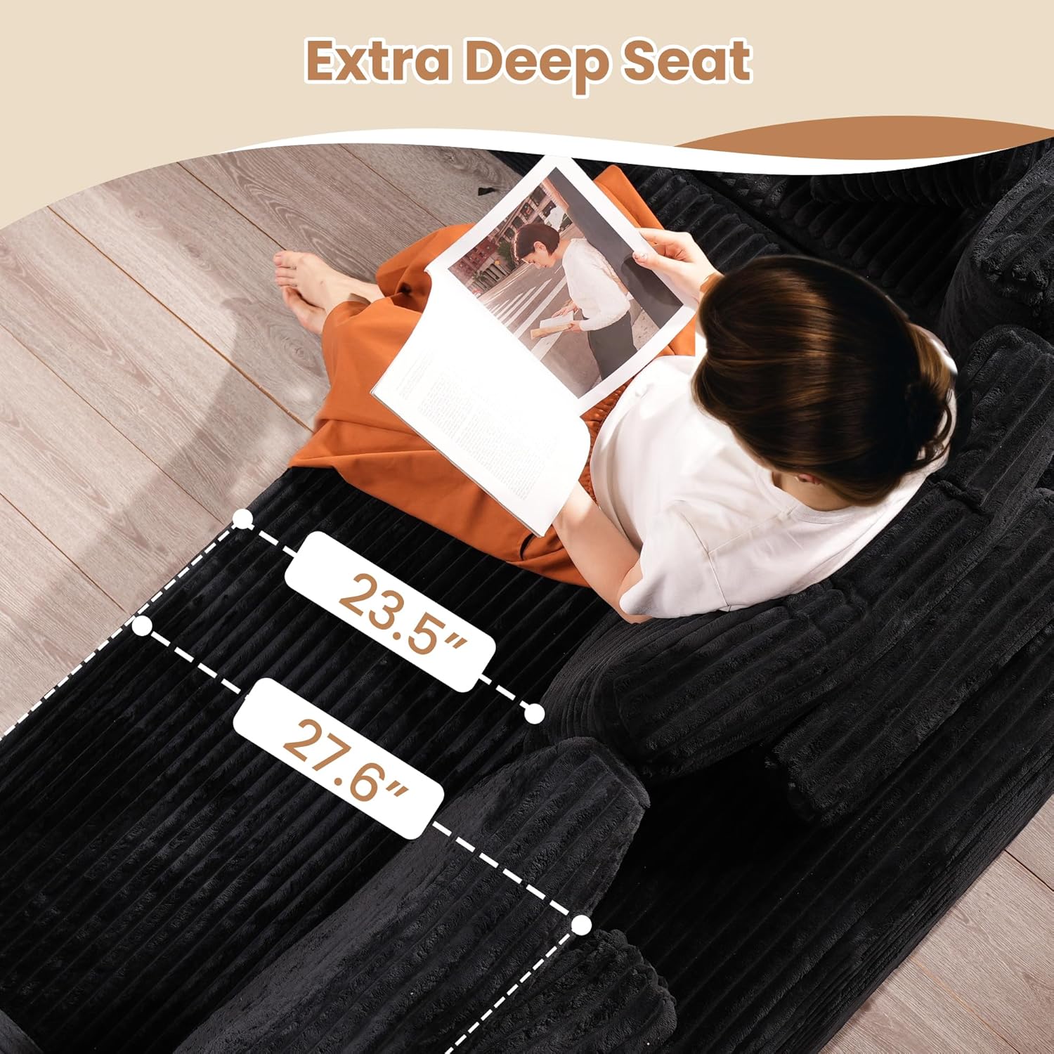 HOOOWOOO Cloud Sectional Couches for Living Room,Modular Sectional Sofa No Assembly,136X133 Inch Plush Corduroy Large G Shaped Floor Couch Set with Deep Seat Chaise Ottoman(Black)