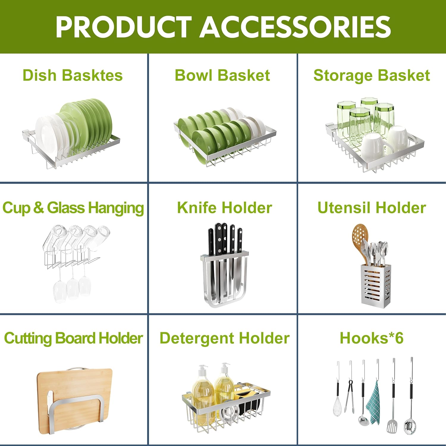 - đź§˝ Hygienic & Easy Clean Grid Design: The seamless stainless steel surface prevents grime buildup, while the open grid metal dish drying rack structure allows quick wiping without disassembly. Removable accessories fit in sinks for deep cleaning, perfect for households prioritizing kitchen sanitation