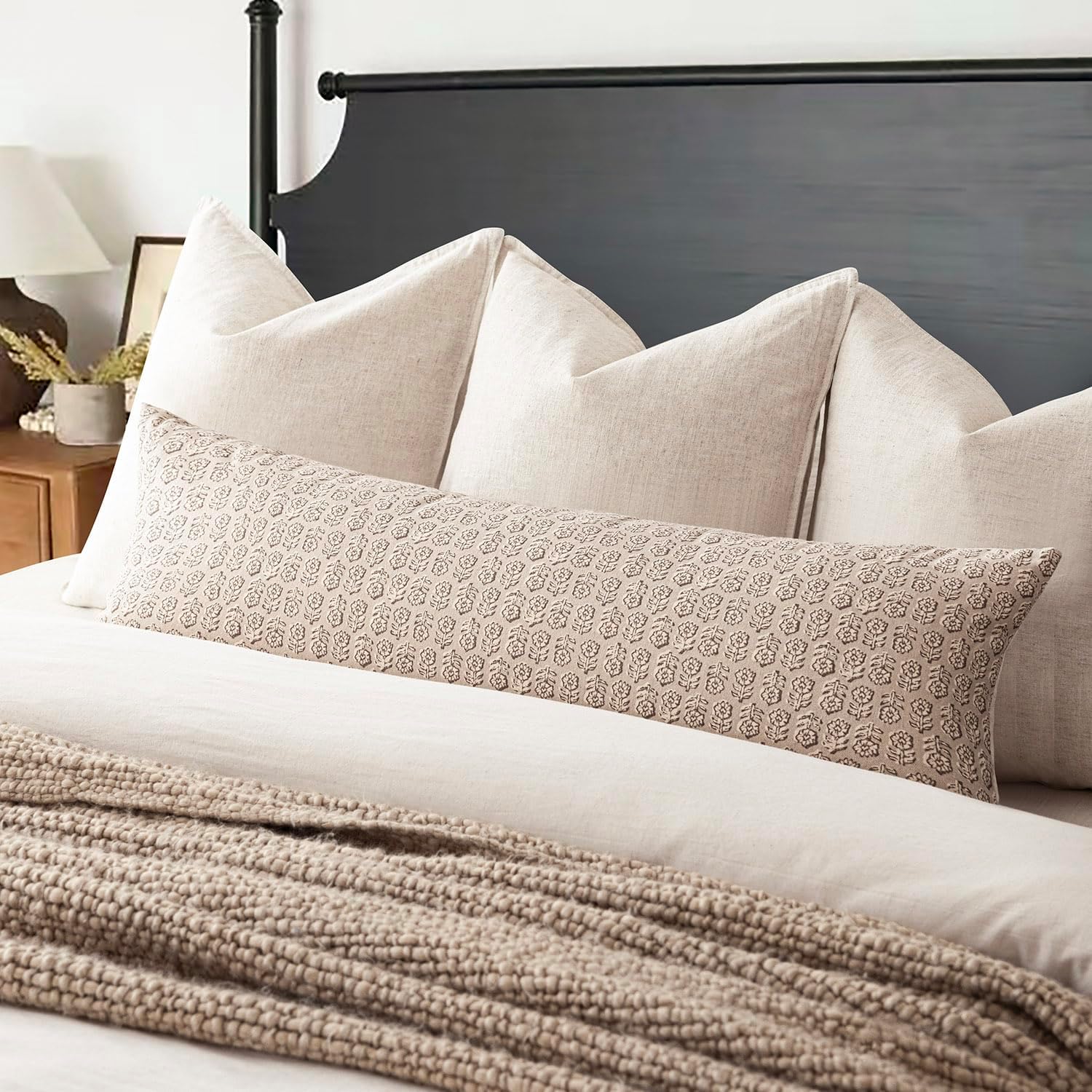 Foindtower Set of 2 Decorative Long Body Lumbar Throw Pillow Covers Vintage Accent Farmhouse Cushion Covers Neutral Home Decor for Sofa Couch Chair Bedroom Living Room Outdoor,14×36 Inch,Ivory Beige