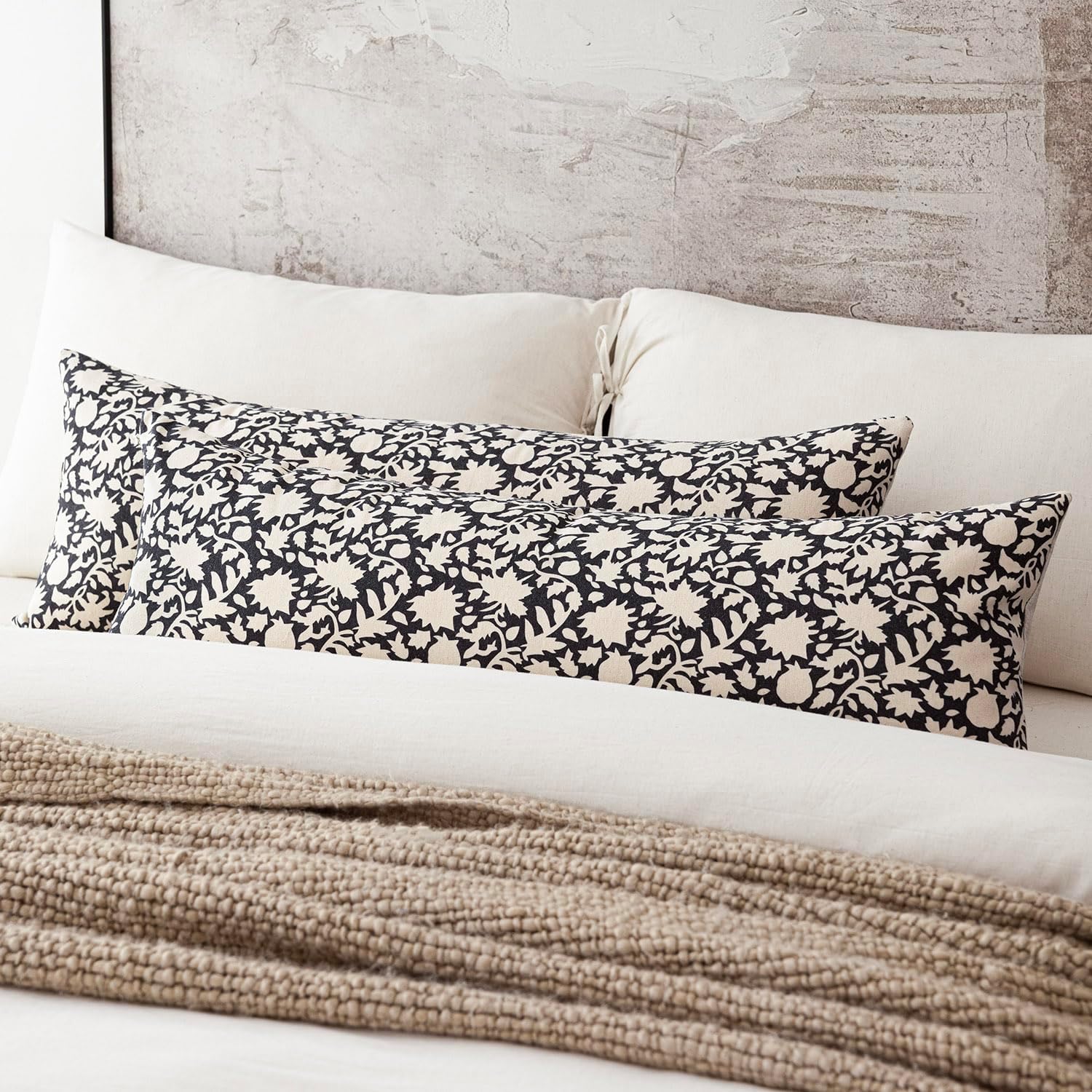 Foindtower Set of 2 Decorative Long Body Lumbar Throw Pillow Covers Accent Farmhouse Cushion Covers Neutral Vintage Pillowcase for Couch Sofa Bedroom Living Room Home Decor Outdoor14×36 Inch,Black
