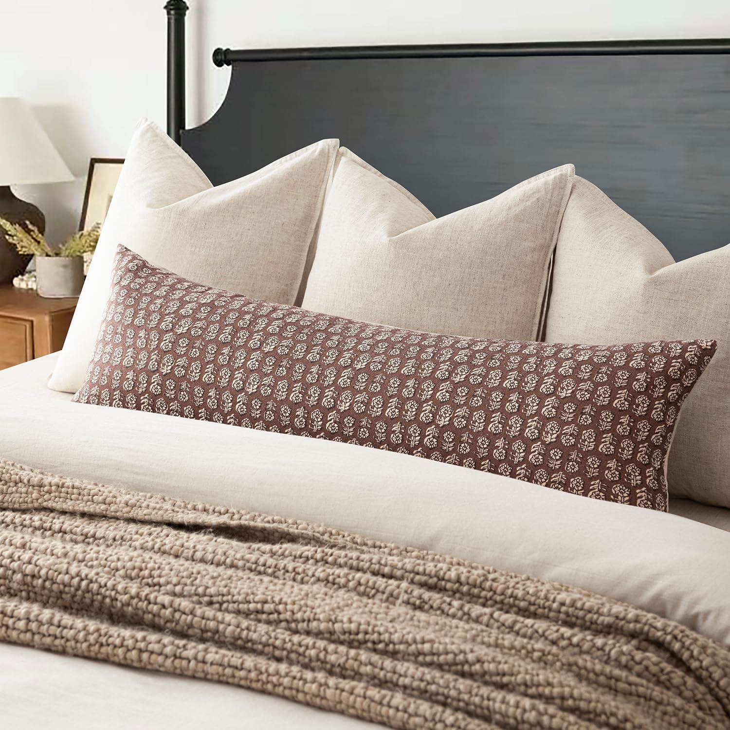 Foindtower Set of 2 Decorative Vintage Long Lumbar Throw Pillow Covers Neutral Modern Farmhouse Cushion Covers Floral Home Decor for Sofa Couch Chair Bedroom Living Room Outdoor,14×36 Inch,Wine Red
