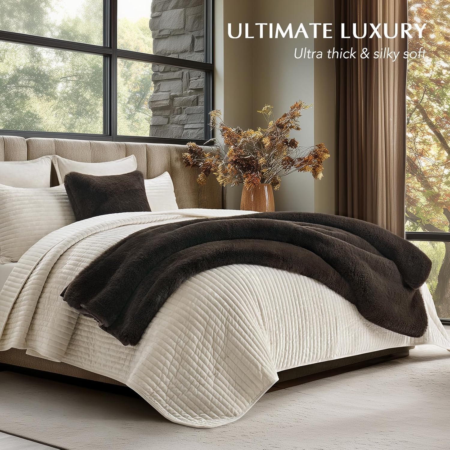Luxury Soft Faux Chinchilla Fur Throw Blanket for Couch, Warm Thick Heavy Winter Throw Blanket 1220GSM for Bed, Fluffy Cozy Mink Blanket with Reversible Velvet, Espresso Mink, 60"x80"