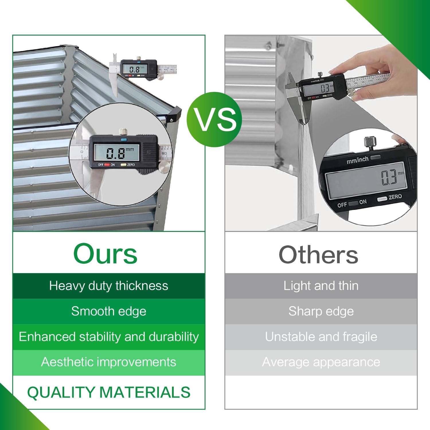 - DURABLE GALVANIZED MATERIAL: GARDMAX outdoor raised garden beds are made from 0.8mm heavy-duty galvanized material, ensuring exceptional longevity and durability. It is more resistant to high temperatures and freezes, making it very suitable for outdoor use. And this metal will survive the elements for decades, but when you're ready to replace it, the metal is entirely recyclable