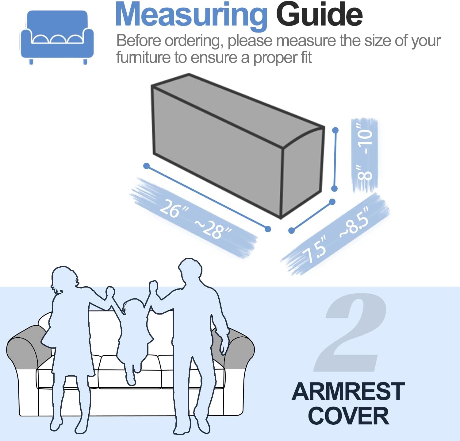 Couch Cushion Covers Individual Large Super Stretch Chenille (Softer Version) Sofa Cushion Covers, Armrest Cover Couch Slipcovers Furniture Protector (2PC, Blue)