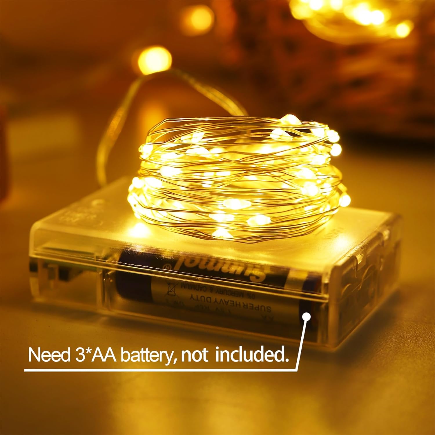 Christmas Decorations Warm White Fairy String Lights, Battery Operated with Timer, 2 Pack Total 33FT 100 Led Mini Battery Powered Twinkle Mason Jar Waterproof Firefly Lights DIY Party