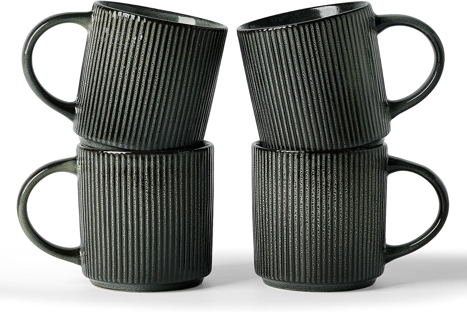 famiware Coffee Mug Set for 4, Star 12 oz Catering Mugs Cup Set with Handle for Coffee, Tea, Cocoa, Milk - Ceramic Stoneware Drinkware Set, Deep Forest