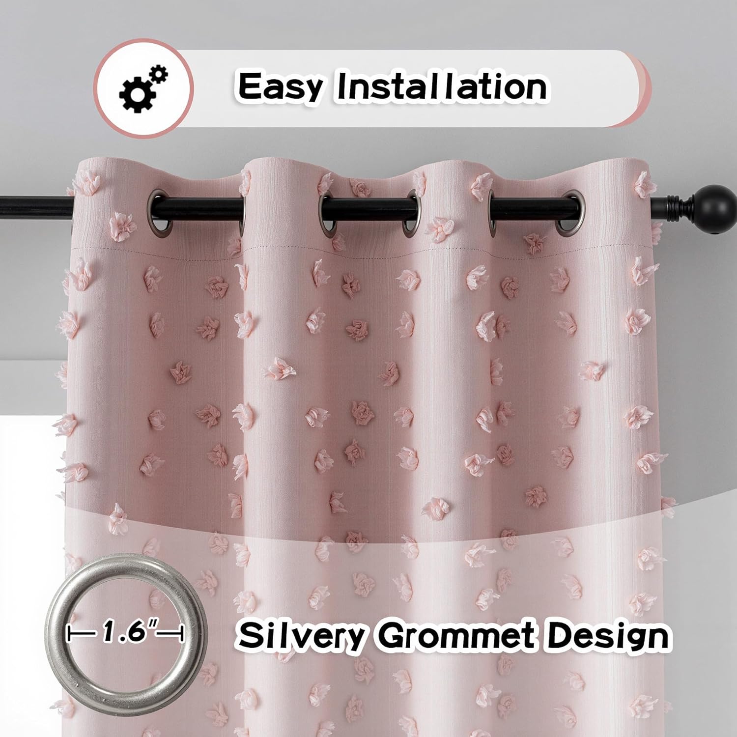 MYSKY HOME 100% Blackout Curtains for Nursery Thermal Insulated Blush Pink Pom Pom Curtain 72 Inch Length for Girls Bedroom 2 Panels Grommet White Sheer Drapes for Kitchen Dining Room Door, 52W x 72L