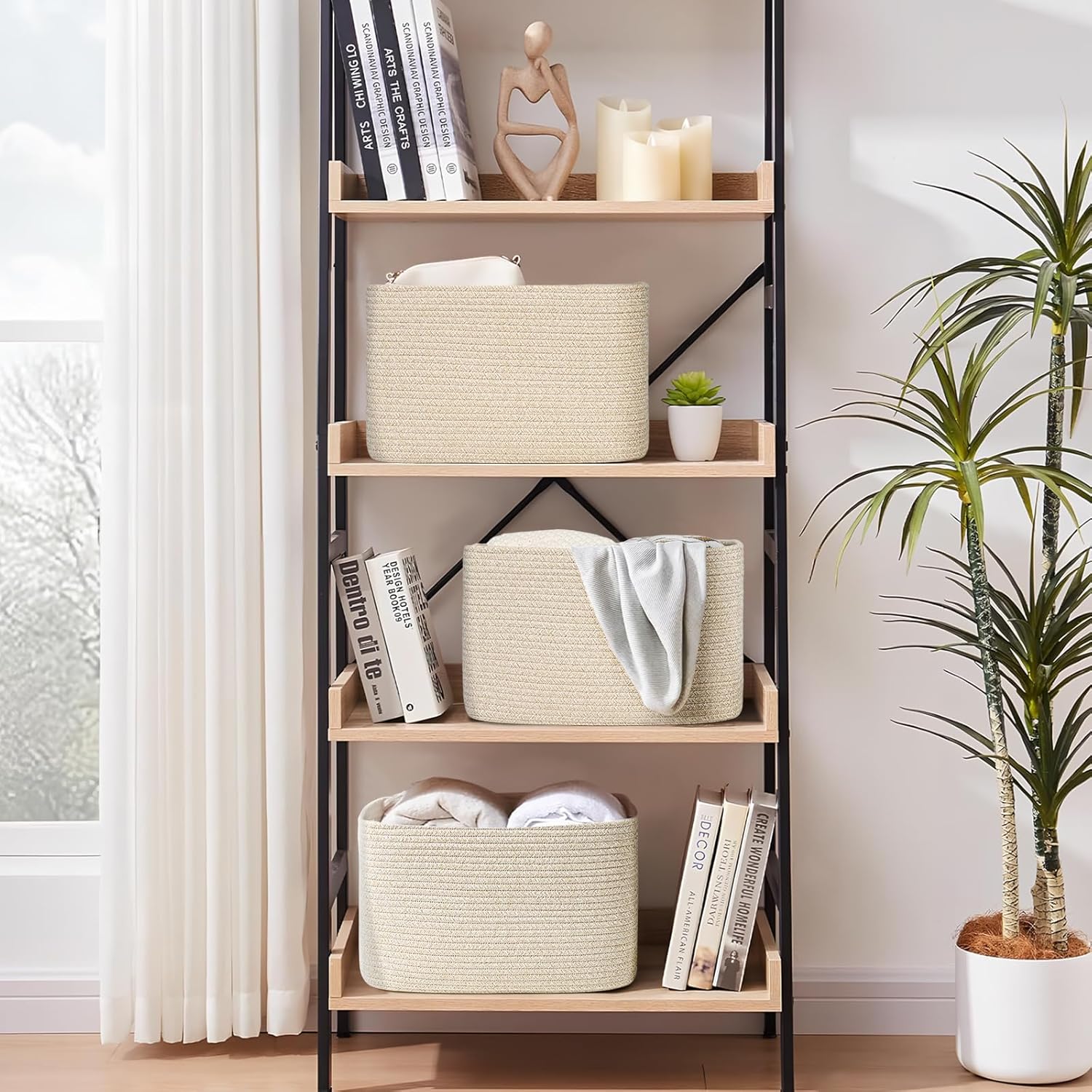 - đăCotton & Durable Shelf Basketsă: 3-Pack Storage Baskets are made of cotton rope weaving Stronger and more durable than plastic baskets and rattan baskets, will not damage the contact surfaces, in order to meet your storage needs based on the decorative role can also be played.