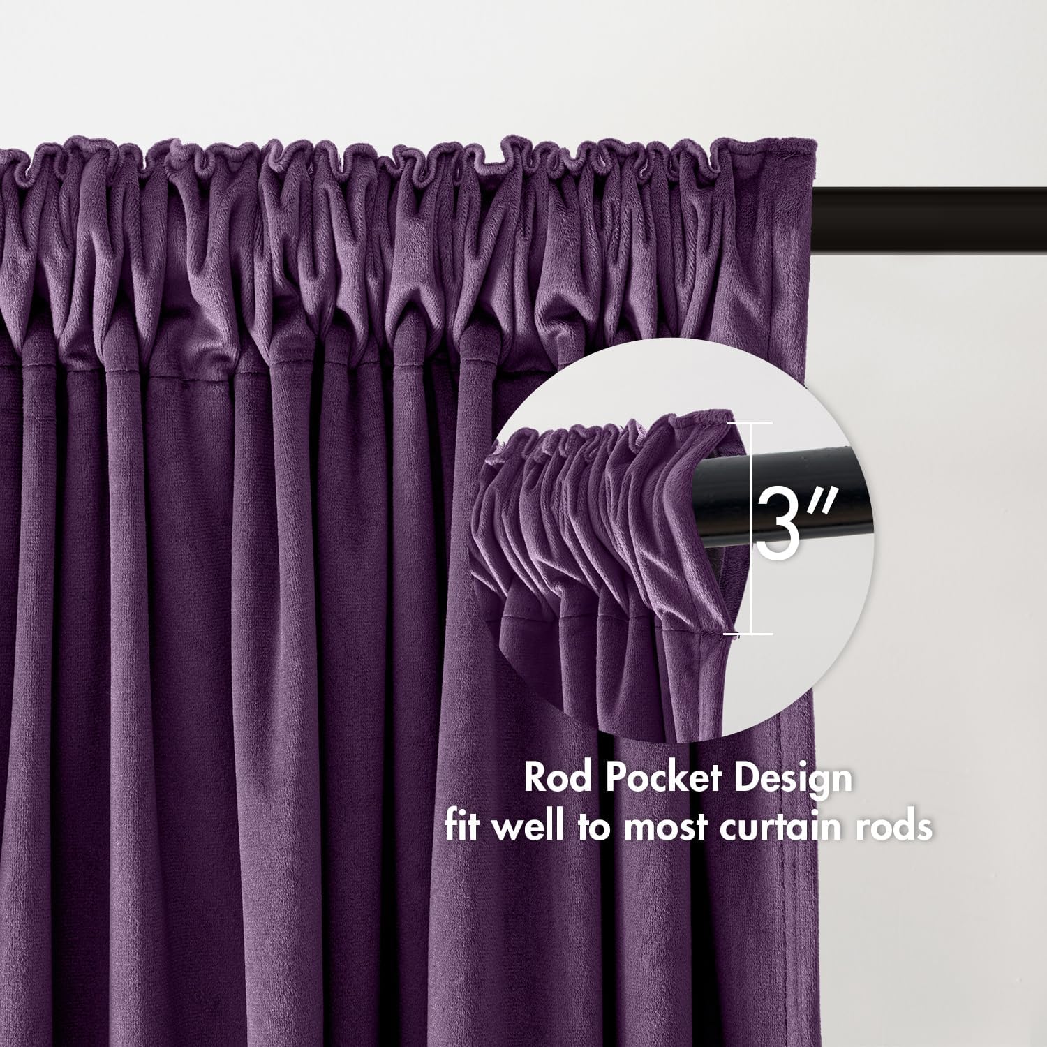 MIULEE Purple Velvet Curtains Thermal Insulated Blackout Curtain Drapes for Bedroom Living Room Darkening 90 Inches Long Curtains Panels Rod Pocket Set of 2