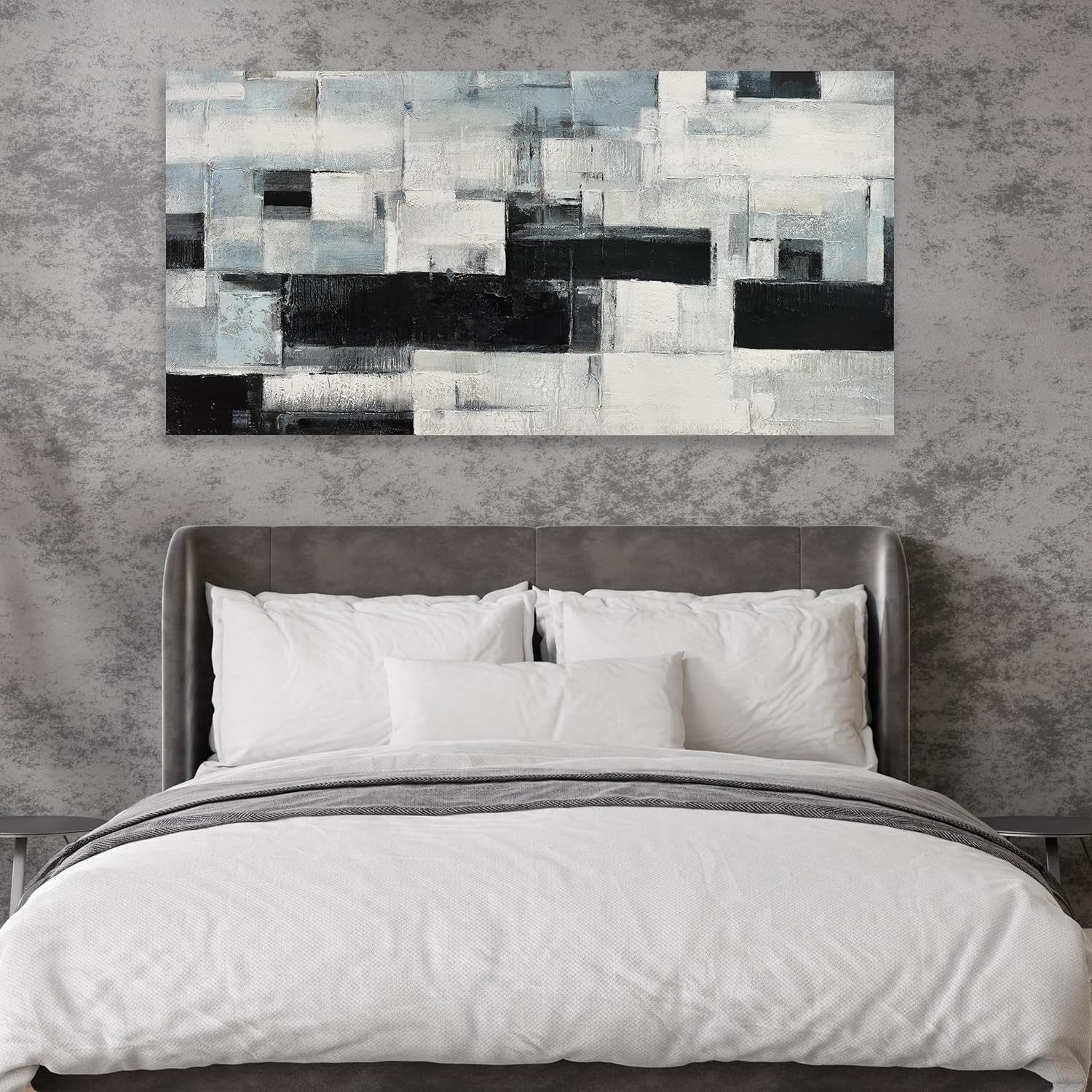 Glvzygy Abstract Wall Art Room Decor Black White and Gray Plaid Minimalism Picture Abstract Art Wall Decor Modern Abstract Wall Art Canvas for Living Room Bedroom Office 24"x48"