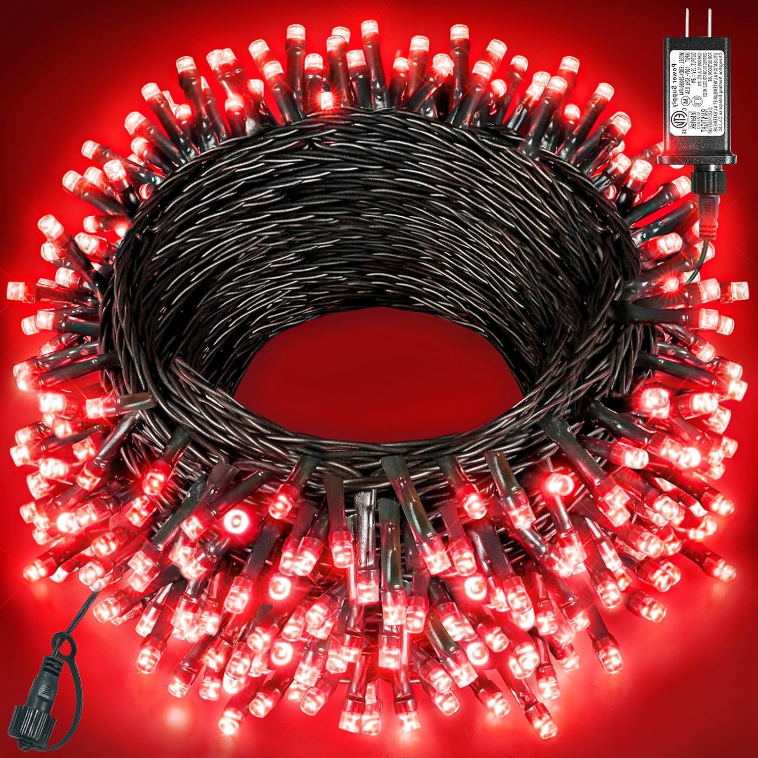 80FT 240 LED Christmas Lights, Connectable Christmas Tree Lights for Outdoor/Indoor, Waterproof & 8 Modes & Timer, Green Wire String Light for Home Garden Xmas Party Holiday Decorations, Red