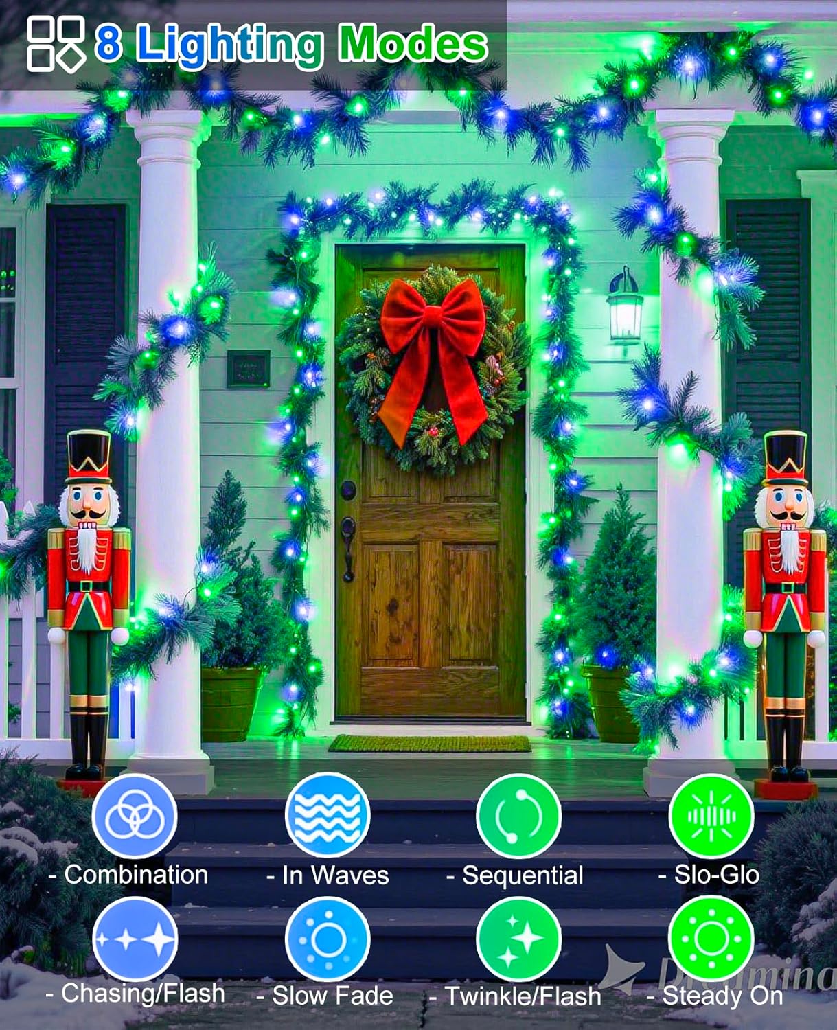 - ă8 Different Lighting ModesăThese Christmas lights outdoor feature 8 lighting modes: combination, in waves, sequential, slo-glo, chasing/flash, slow fade, twinkle/flash, and steady on. Simply press the round button on the adapter to select your favorite mode. Perfect for creating a festive atmosphere and lighting up every corner with cozy, warm lights.