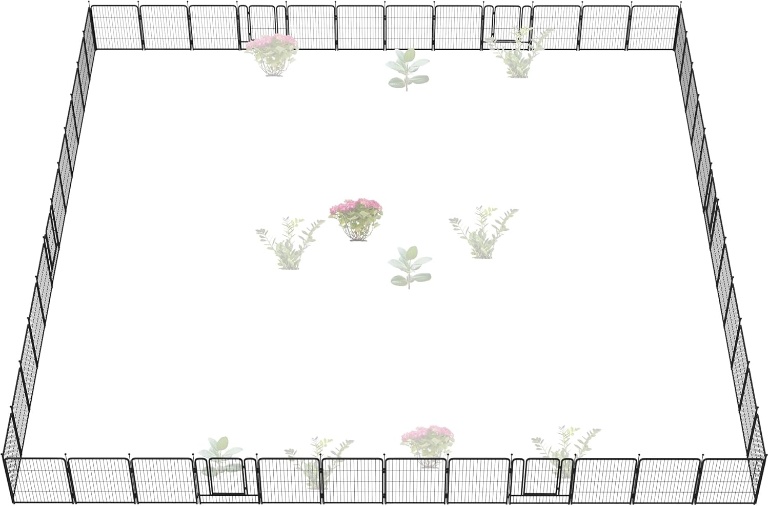 FXW Garden Fence Outdoor for The Yard – 32in(H) x 108.0ft(L) Heavy Duty Metal Animal Barrier for Dog and Rabbit, Decorative Dog Fence, 48 Panels, Black