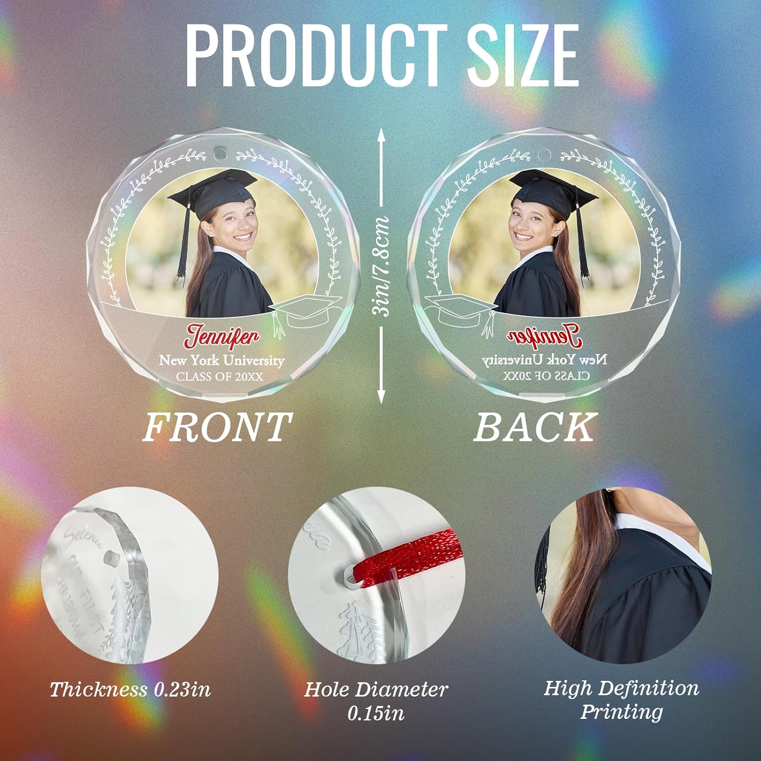 - GRADUATION MEMORIAL GIFT: If you are looking for a graduation memorial gift that can be collected for a long time, our graduation glass ornaments are worth to have, which not only can be kept beautiful for a long time, but also can be placed or hung anywhere for display, to celebrate the important moments of graduation, but also can be easily stored in a box, pocket to accompany you to any place