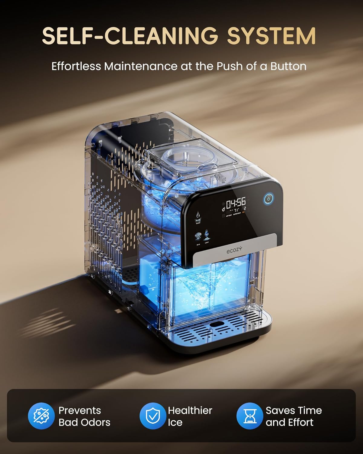 - Smart App & Voice Control: Start or stop ice making remotely using the EcozyHome app—or let Alexa or Google Assistant do it for you. From your phone to your voice, control flows exactly how you live: hands-free, hassle-free, from anywhere