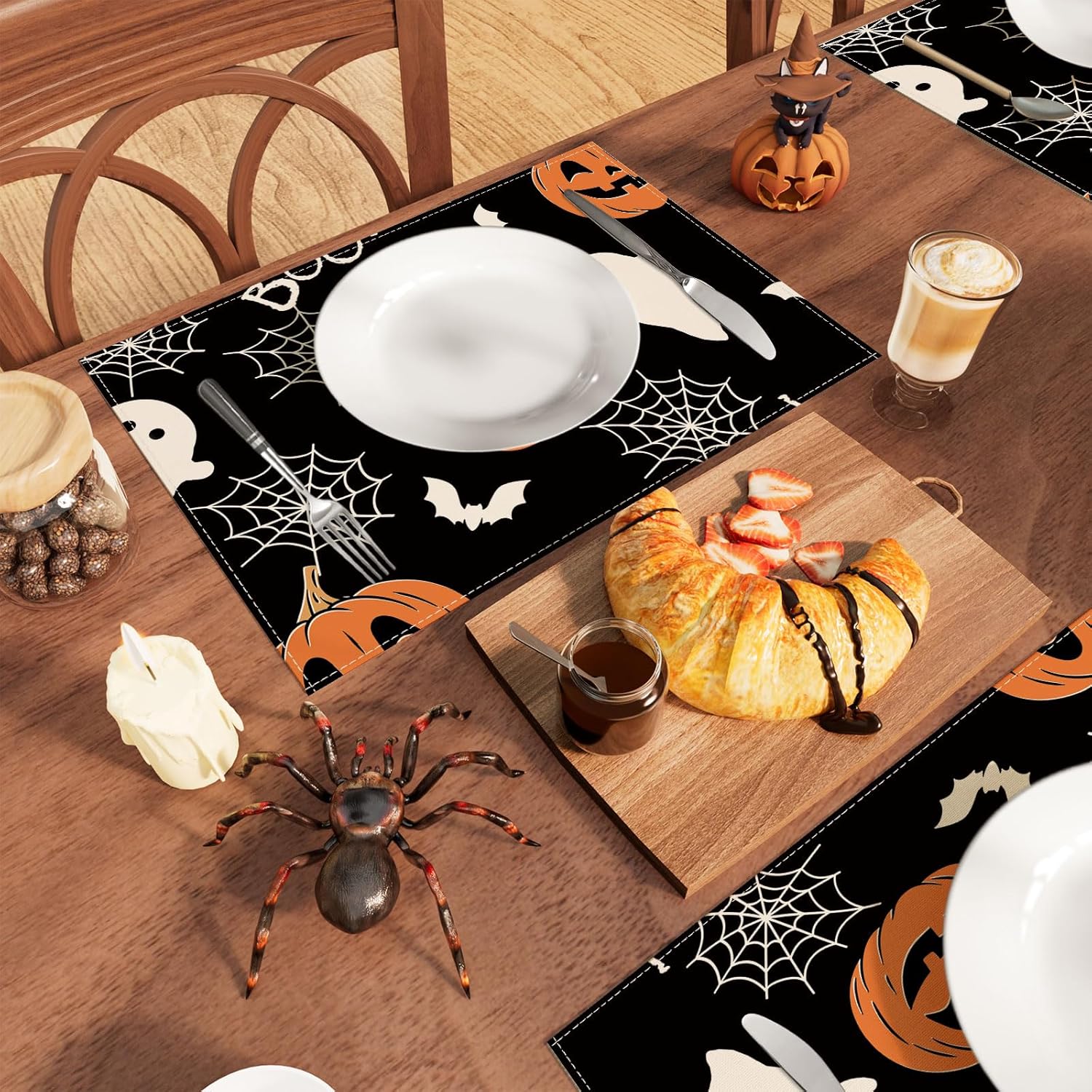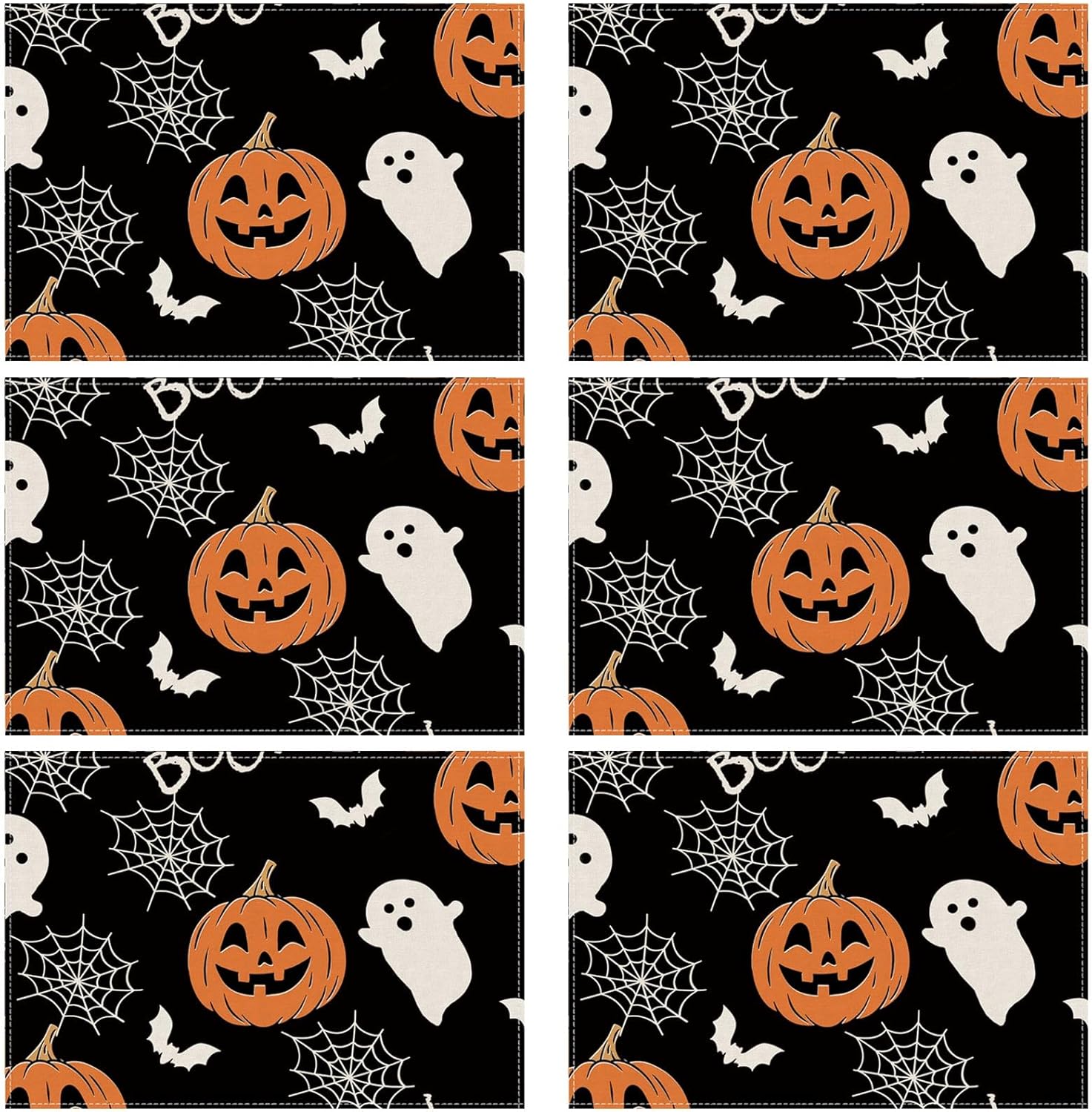 XCHI Boo Spooky Ghost Pumpkin Halloween Cloth Placemats Set of 6 Table Mats Table Decorations 12x18 Inch