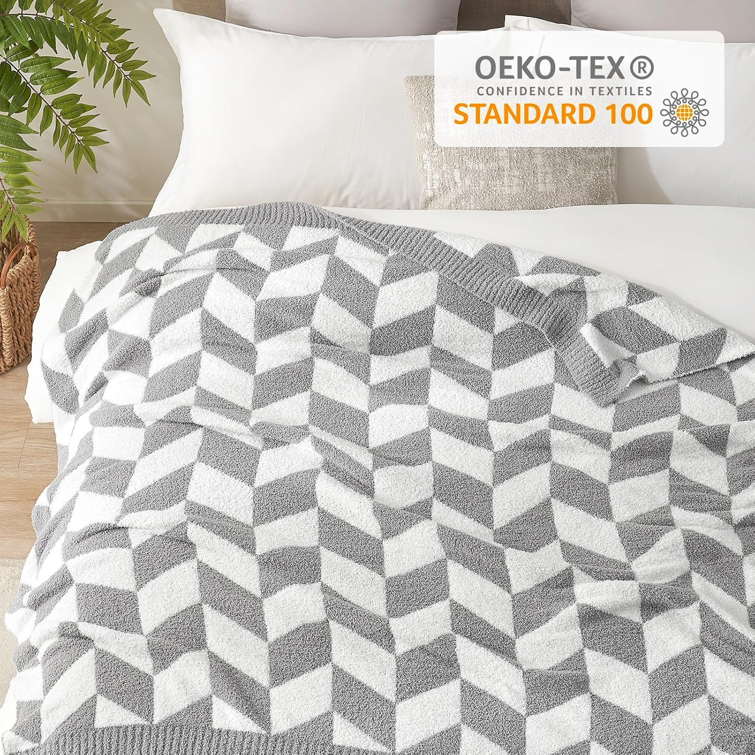 Snuggle Sac Chevron Throw Blanket for Couch, Reversible Super Soft Warm Blankets Cozy Knit Fuzzy Plush Lightweight Throws for Sofa, Bed, Camping,Grey,50x60 inches