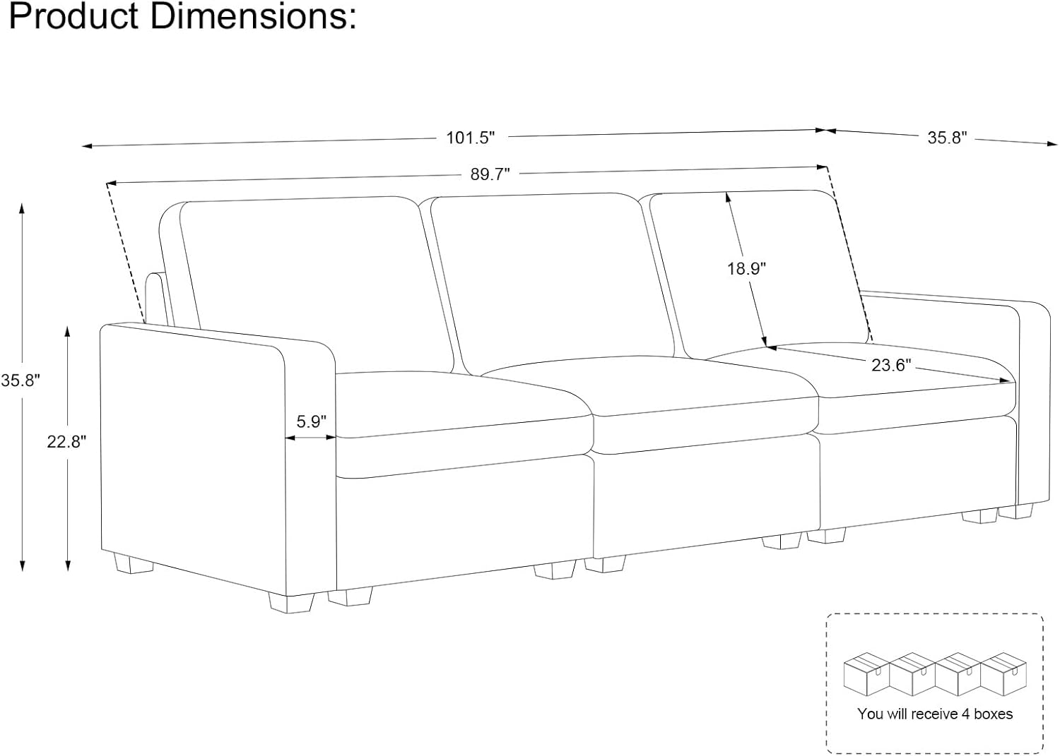 - Tool-Free Assembly:Setup is quick and hassle-free—no tools required. Each module arrives in its own box, may arrive at different times, so just sit and wait for your perfect sofa to come together.