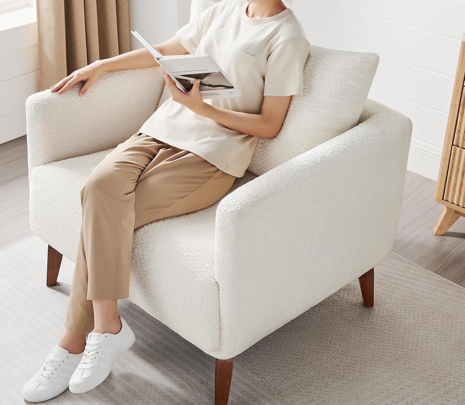 - ✔ Luxurious Boucle Fabric – The VANOMI living room chair is upholstered in soft, elegant boucle fabric, adding warmth and a modern aesthetic to your space. Its textured upholstery enhances both comfort and style, making it a perfect accent chair for any room.
