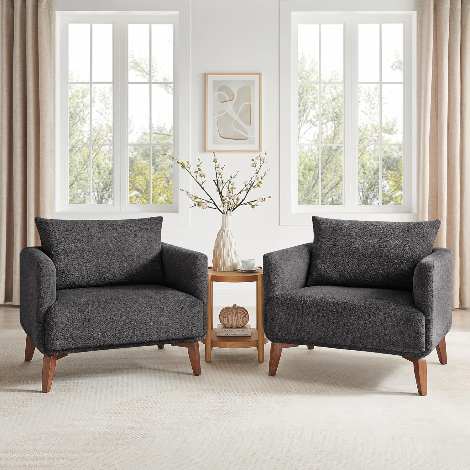 Oversized Accent Chair Modern Boucle Armchair for Living Room Sets of 2 - 37" Wide & Cozy Reading Chair with Solid Wood Legs, Dark Gray Upholstered Lounge Chair for Bedroom & Office (Easy Assembly)